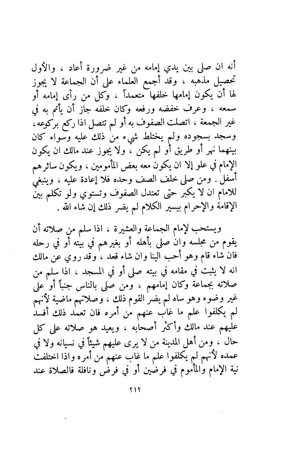 ومن أهل المدينة من لا يرى عليهم شيئا في نسيانه ولا في عمده لأنهم لم يكلفوا علم ما غاب عنهم من أمره وإذا اختلفت نية الإمام والمأموم في فرضين أو في فرض ونافلة فالصلاة عند