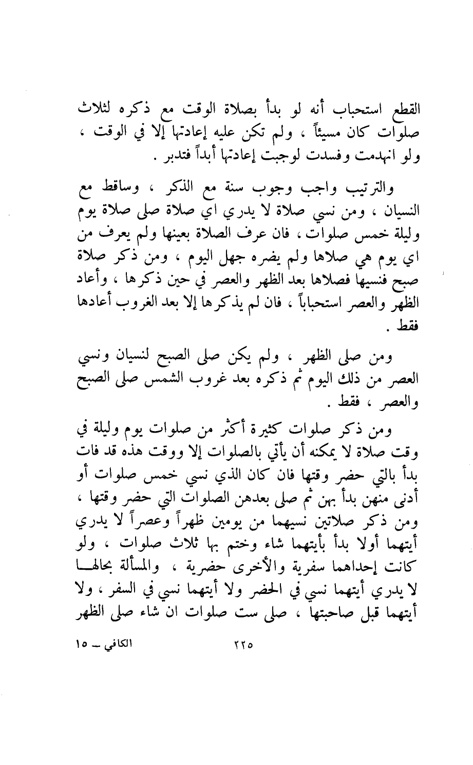 والترتيب واجب وجوب سنة مع الذكر وساقط مع النسيان ومن نسي صلاة لا يدري أي صلاة صلى صلاة يوم وليلة خمس صلوات فإن عرف الصلاة بعينها ولم يعرف من أي يوم هي صلاها ولم يضره جهل اليوم.