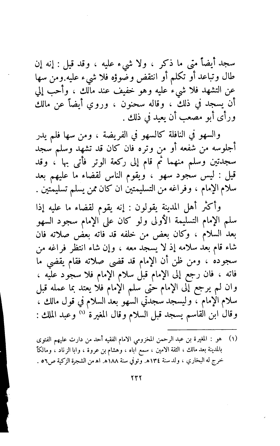 ومن سها عن التشهد فلا شيء عليه وهو خفيف عند مالك وأحب إلي أن يسجد في ذلك وقاله سحنون وروي أيضا عن مالك ورأى أبو مصعب أن يعيد في ذلك.