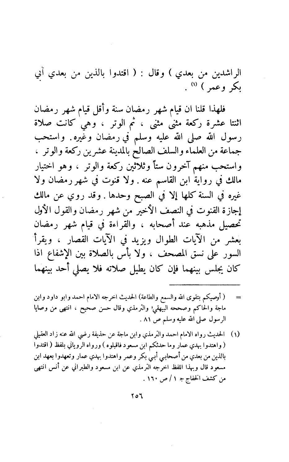 فلهذا قلنا أن قيام شهر رمضان سنة وأقل قيام شهر رمضان أثنتا عشرة ركعة مثنى مثنى ثم الوتر وهي كانت صلاة رسول الله صلى الله عليه وسلم في رمضان وغيره.