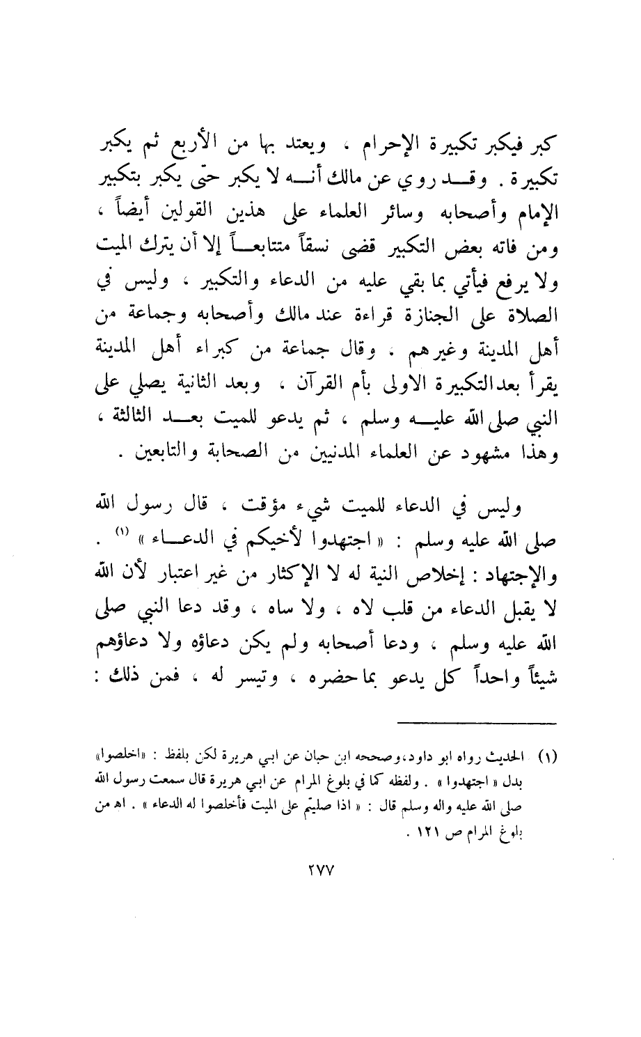 وقال جماعة من كبراء أهل المدينة: يقرأ بعد التكبيرة الأولى بأم القرآن الثانية يصلي على النبي صلى الله عليه وسلم ثم يدعو للميت بعد الثالثة وهذا مشهود عن العلماء المدنيين من الصحابة والتابعين.