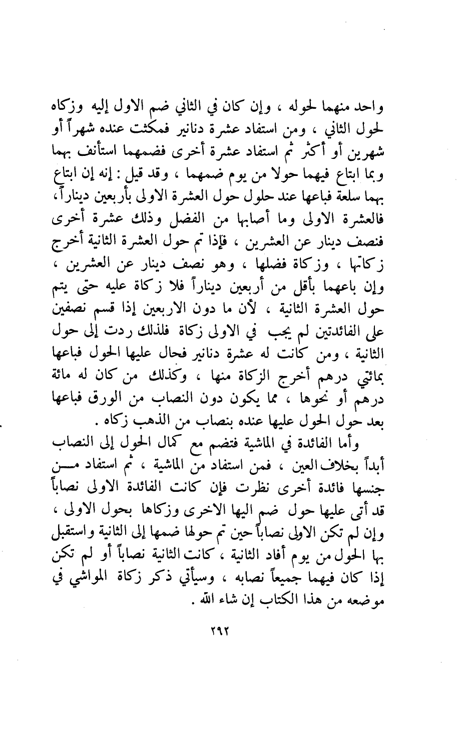 وأما الفائدة في الماشية فتضم مع كمال الحول إلى النصاب أبدا بخلاف العين فمن استفاد من الماشية ثم استفاد من جنسها فائدة أخرى نظرت فإن كانت الفائدة الأولى نصابا قد أتى عليها حول ضم إليها الاخرى وزكاها بحول الاولى وإن لم تكن الأولى نصابا حين تم حولها ضمها إلى الثانية واستقبل بها الحول من يوم أفاد الثانية كانت الثانية نصابا أو لم تكن إذا كان فيهما جميعا نصابه وسيأتي ذكر زكاة المواشي في موضعه من الكتاب إن شاء الله