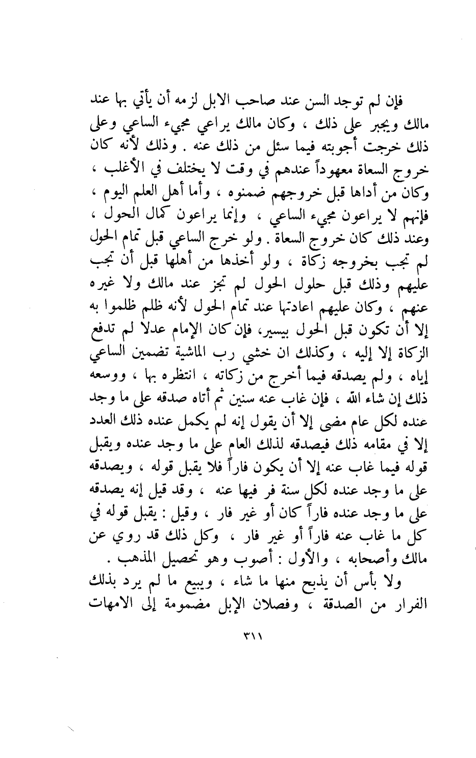 فإن لم توجد السن عند صاحب الإبل لزمه أن يأتي بها عند مالك ويجبر على ذلك وكان مالك يراعي مجيء الساعي وعلى ذلك خرجت أجوبته فيما سئل من ذلك عنه.