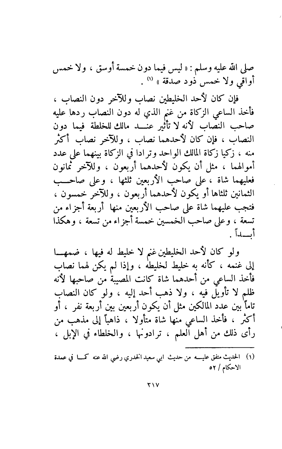 صلى الله عليه وسلم: "ليس فيما دون خمسة أوسق ولا خمس أواقي ولا خمس ذود صدقة".
