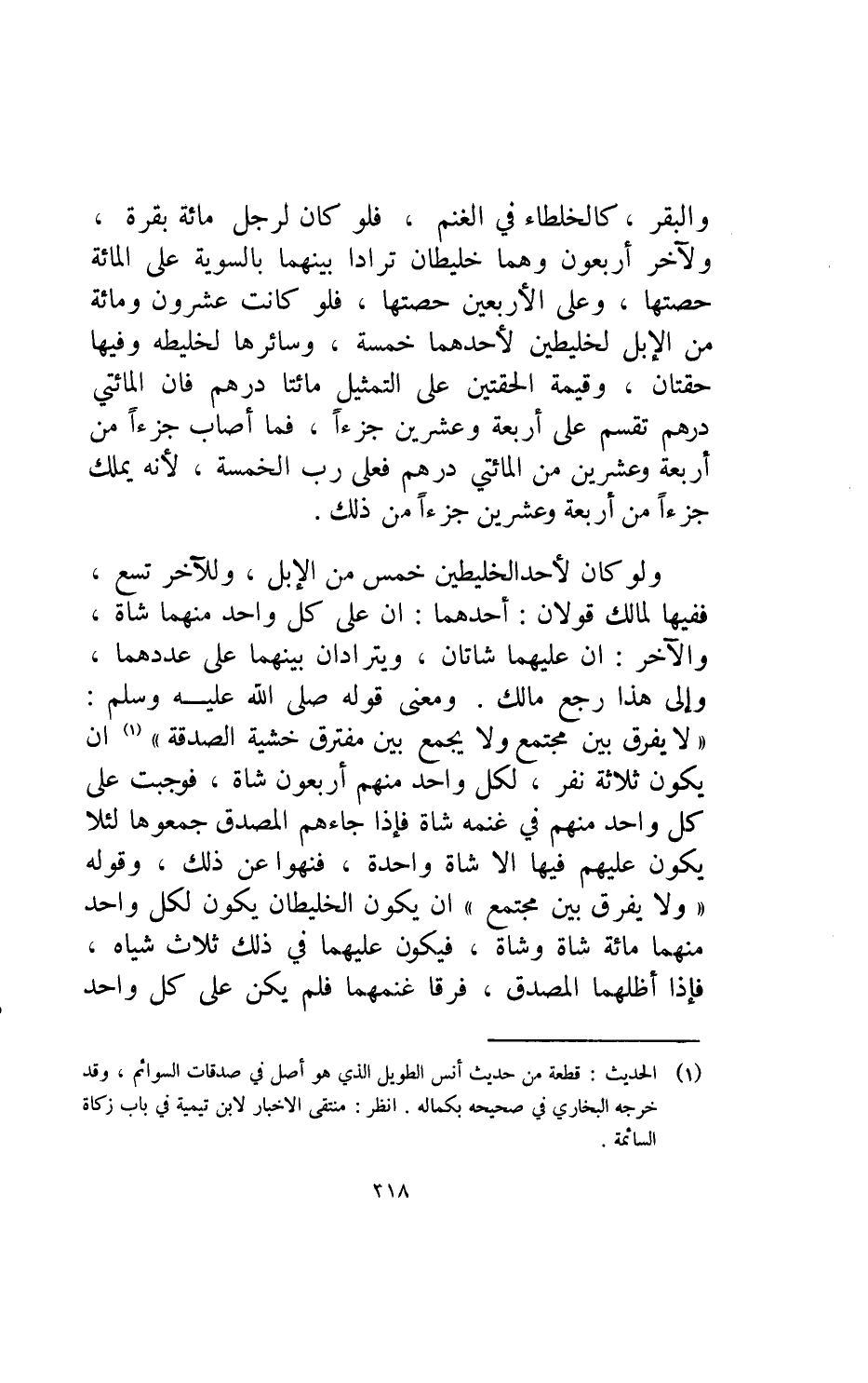 ومعنى قوله صلى الله عليه وسلم: "لا يفرق بين مجتمع ولا يجمع بين مفترق خشية الصدقة" أن يكون ثلاثة نفر لكل واحد منهم أربعون شاة فوجبت على كل واحد منهم في غنمه شاة فإذا جاءهم المصدق جعوها لئلا يكون عليهم فيها إلا شاة واحدة فنهوا عن ذلك.