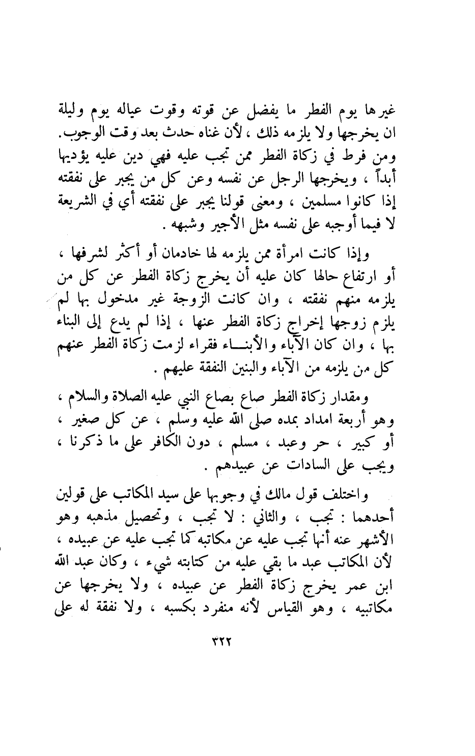 وتحصيل مذهبه وهو الأشهر عنه أنها تجب عن مكاتبه كما تجب عليه عن عبيده لأن المكاتب عبد ما بقي عليه من كتابته شيء وكأن عبد الله بن عمر يخرج زكاة الفطر عن عبيده ولا يخرجها عن مكاتبيه وهو القياس لأنه منفرد بكسبه ولا نفقة له على