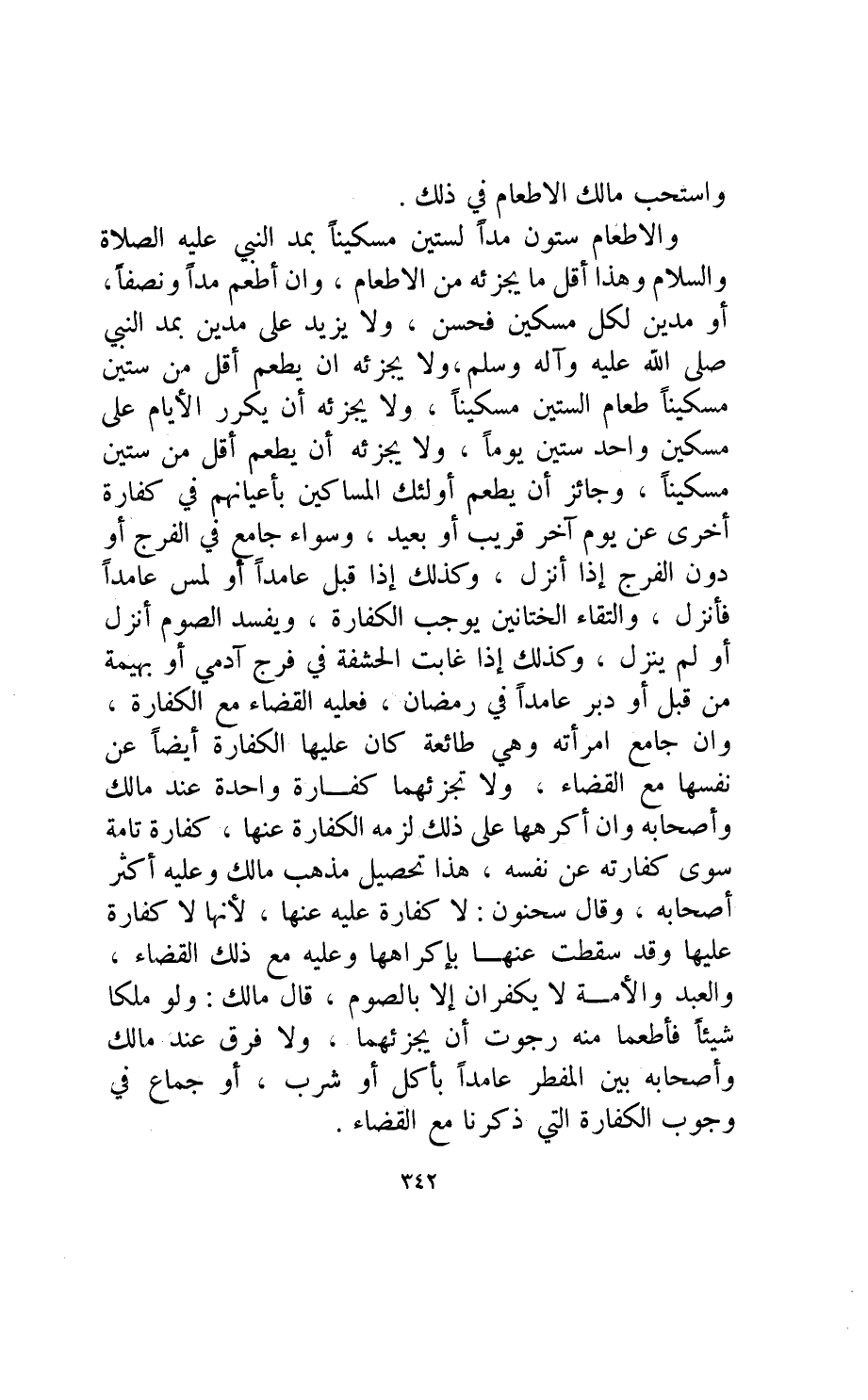 والإطعام ستون مدا لستين مسكينا بمد النبي عليه الصلاة والسلام وهذا أقل ما يجزئه من الإطعام وان أطعم مدا ونصفا أو مدين لكل مسكين فحسن ولا يزيد على مدين بمد النبي صلى الله عليه وآله وسلم ولا يجزئه أن يطعم أقل من ستين مسكينا إطعام الستين مسكينا ولا يجزئه إن يكرر الأيام على مسكين واحد ستين يوما ولا يجزئه أن يطعم أقل من ستين مسكينا وجائز أن يطعم أولئك المساكين بأعيانهم في كفارة أخرى عن يوم آخر قريب أو بعيد وسواء جامع في الفرج أو دون الفرج إذا أنزل وكذلك إذا قبل عامدا أو لمس عامدا فأنزل والتقاء الختانين يوجب الكفارة ويفسد الصوم أنزل أو لم ينزل وكذلك غابت الحشفة في فرج آدمي أو بهيمة من قبل أو دبر عامدا في رمضان فعليه القضاء مع الكفارة وان جامع امرأته وهي طائعة كان عليها الكفارة أيضا عن نفسها مع القضاء ولا تجزئهما كفارة واحدة عند مالك وأصحابه وإن أكرهها على ذلك لزمه الكفارة عنها كفارة تامة سوى كفارته عن نفسه هذا تحصيل مذهب مالك وعليه أكثر أصحابه وقال سحنون لا كفارة عليه عنها لأنها لا كفارة عليها وقد سقطت عنها بإكراهها وعليه مع ذلك القضاء والعبد والأمة لا يكفران إلا بالصوم قال مالك ولو ملكا شيئا فأطعما منه رجوت أن يجزئهما ولا فرق عند مالك وأصحابه بين المفطر عامدا بأكل أو شرب أو جماع في وجوب الكفارة التي ذكرنا مع القضاء.