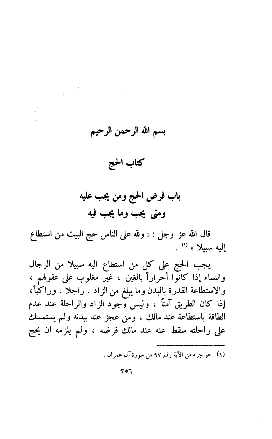 باب فرض الحج ومن يجب عليه ومتى يجب وما يجب فيه