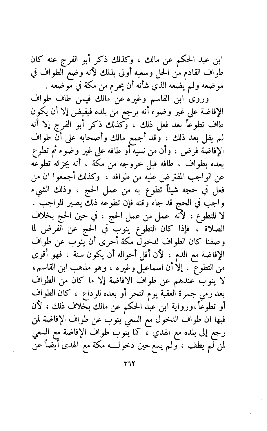 ورواية ابن عبد الحكم عن مالك بخلاف ذلك لأن فيها أن طواف الدخول مع السعي ينوب عن طواف الإفاضة لمن رجع إلى بلده مع الهدي كما ينوب طواف الإفاضة مع السعي لمن لم يطف ولم يسع حين دخوله مكة مع الهدى أيضا عن