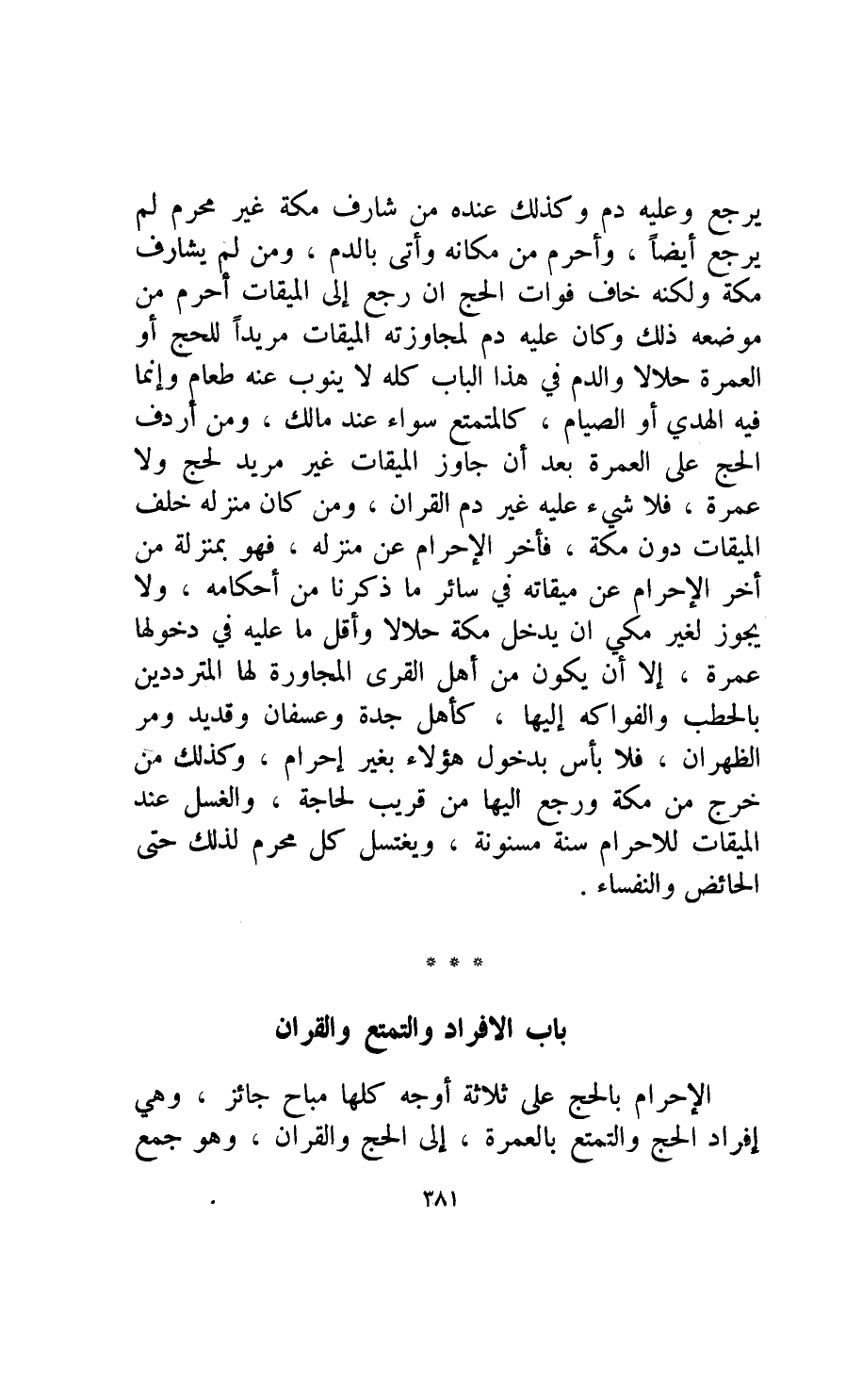 الإحرام بالحج على ثلاثة أوجه كلها مباح جائز وهي إفراد الحج والتمتع بالعمرة إلى الحج