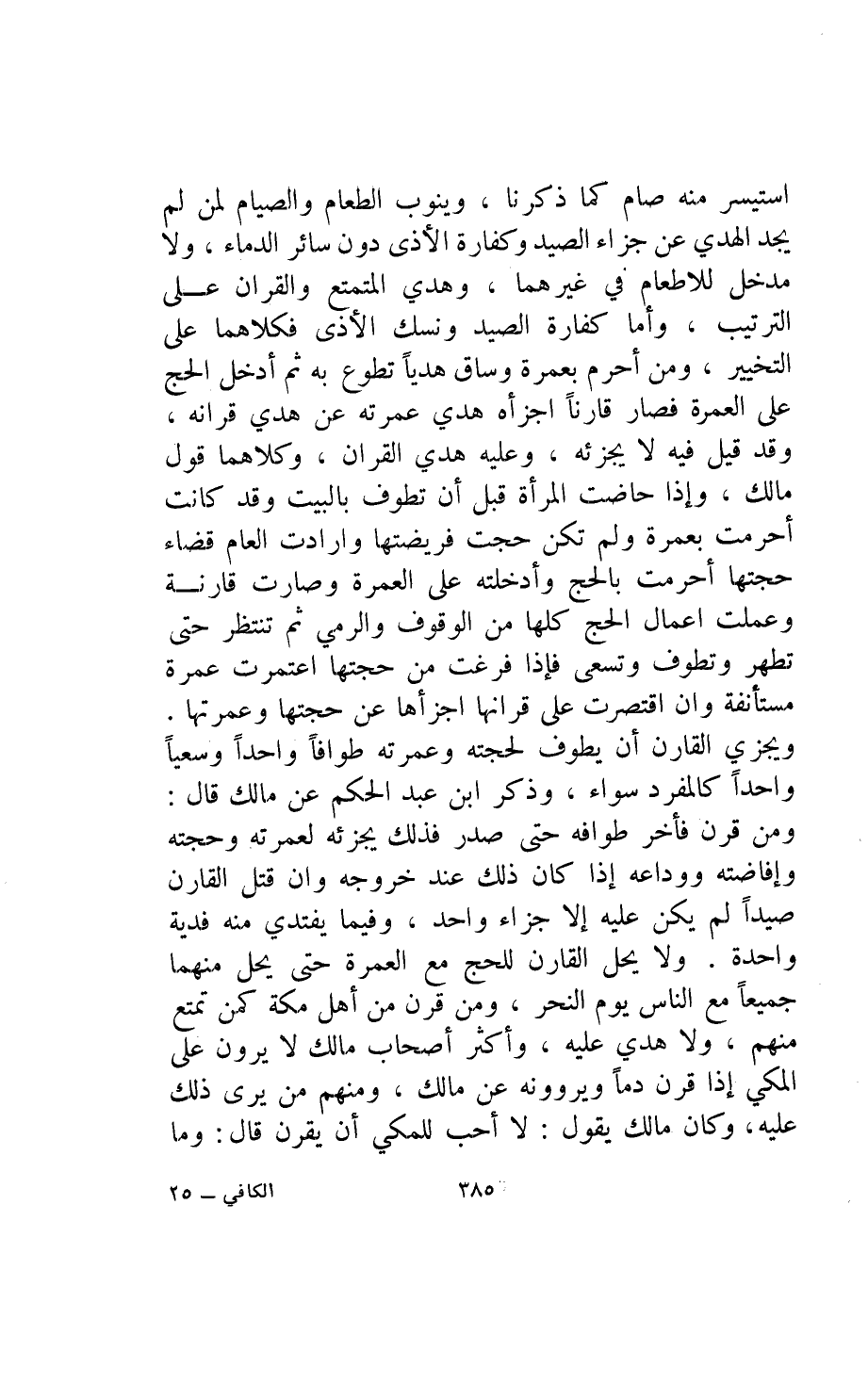 وذكر ابن عبد الحكم عن مالك قال: ومن قرن فأخر طوافه حتى صدر فذلك يجزئه لعمرته وحجته وإفاضته ووداعه إذا كان ذلك عند خروجه وإن قتل القارن صيدا لم يكن عله الإجزاء واحد وفيما يفادى منه فدية واحدة.