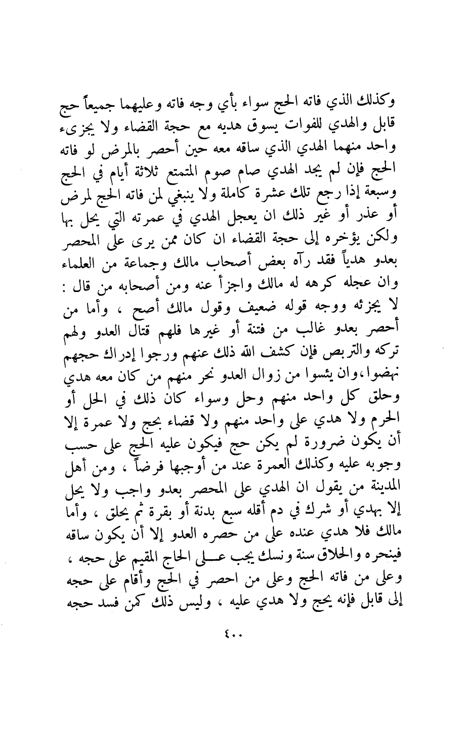 وأما مالك فلا هدي عنده على من حصره العدو إلا أن يكون ساقه فينحره والحلاق سنة ونسك يجب على الحاج المقيم على حجه وعلى من فاته الحج وعلى من أحصر في الحج وأقام على حجه إلى القابل فإنه بحج ولا هدي عليه وليس ذلك كمن فسد حجه