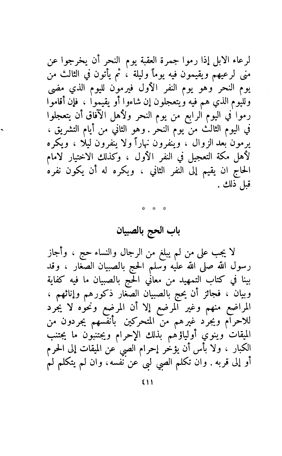 لرعاء الإبل إذا رموا جمرة العقبة يوم النحر أن يخرجوا عن منى لرعيهم ويقيمون فيه يوما وليلة ثم يأتون في الثالث من يوم النحر وهو النفر الأول فيرمون لليوم الذي مضى ولليوم الذي هم فيه ويتعجلون إن شاءوا أو يقيموا فإن اقاموا رموا في اليوم الرابع من يوم النحر ولأهل الآفاق أن يتعجلوا في اليوم الثالث من يوم النحر.