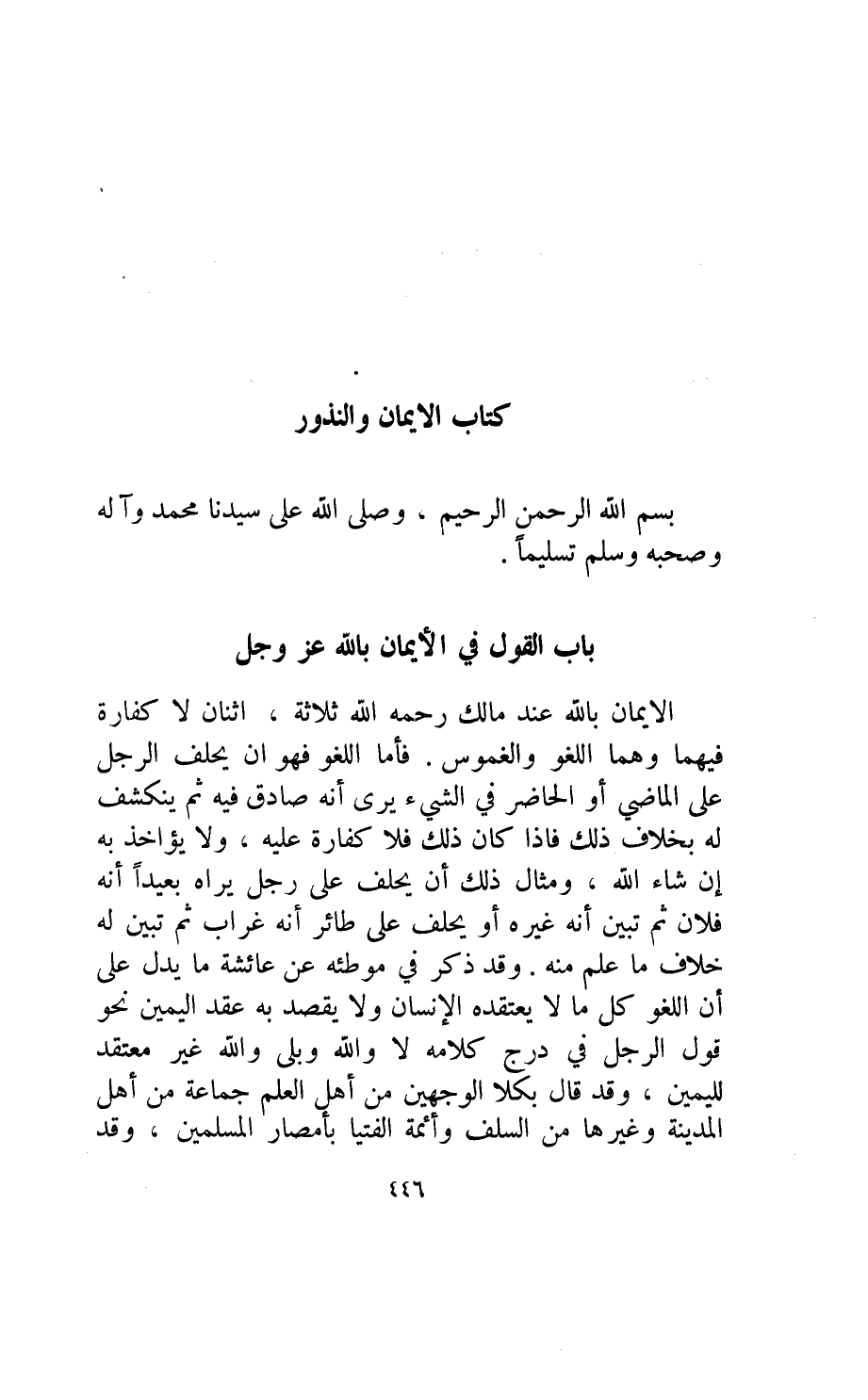 الأيمان بالله عند مالك رحمه الله ثلاثة: اثنان لا كفارة فيهما، وهما: اللغو والغموس.