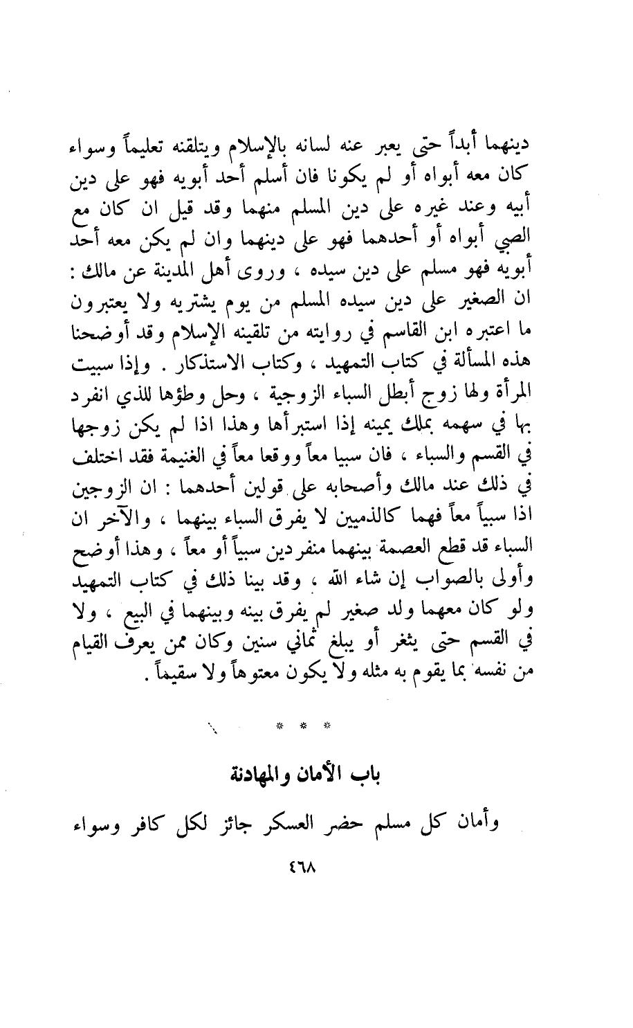 وروى أهل المدينة عن مالك: أن الصغير على دين سيده المسلم من يوم يشتريه ولا يعتبرون ما اعتبره ابن القاسم في روايته من تلقينه الإسلام وقد أوضحنا هذه المسألة في كتاب التمهيد وكتاب الاستذكار.