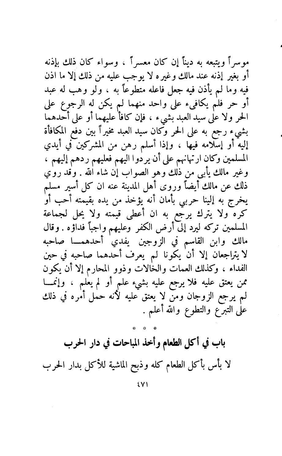 لا بأس بأكل الطعام كله وذبح الماشية للأكل بدار الحرب
