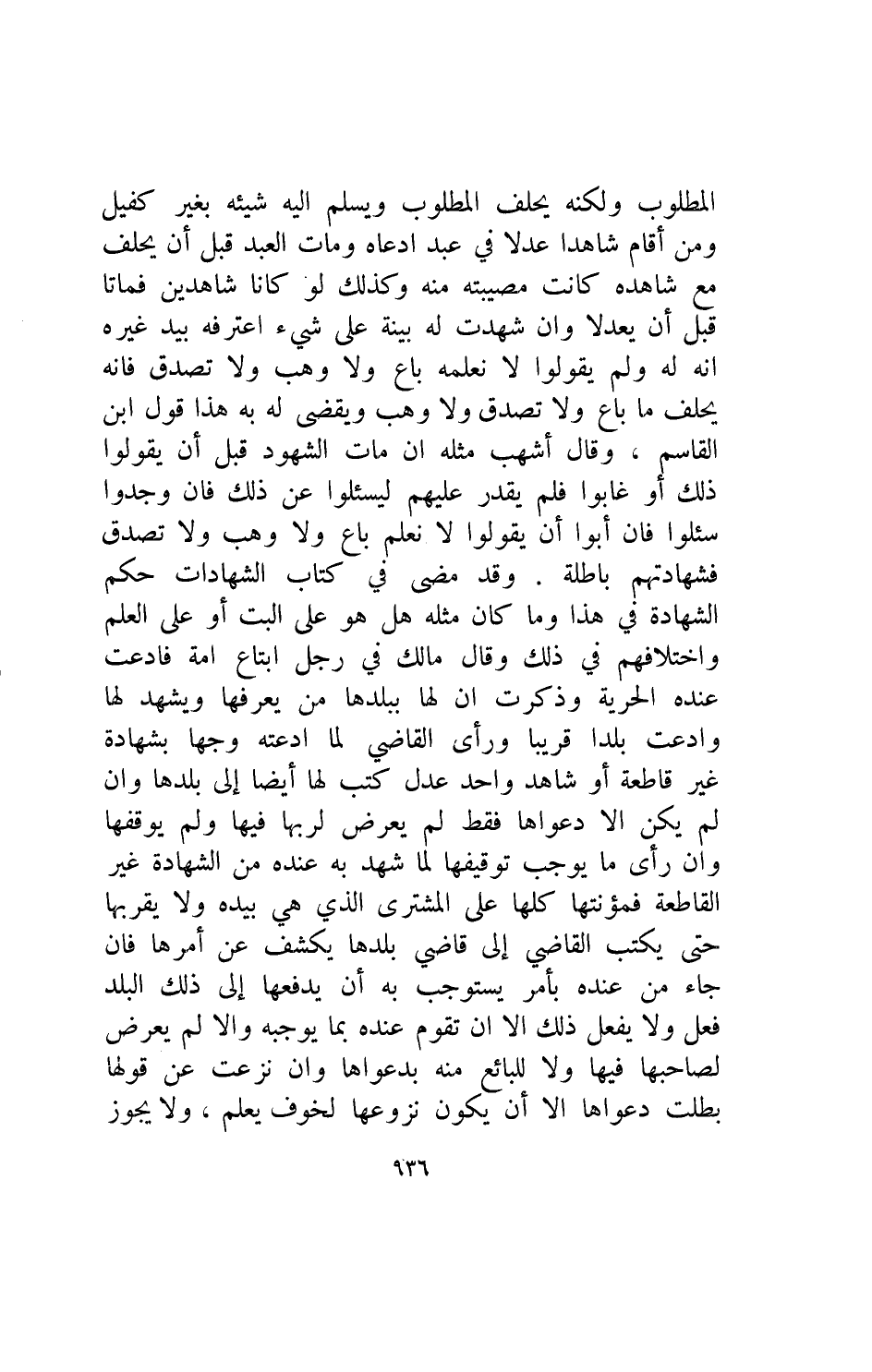 المطلوب ولكنه يحلف المطلوب ويسلم اليه شيئه بغير كفيل ومن اقام شاهدا عدلا في عبد ادعاه ومات العبد قبل ان يحلف مع شاهده كانت مصيبته منه وكذلك لو كانا شاهدين فماتا قبل أن يعدلا وان شهدت له بينة على شيء اعترفه بيد غيره أنه له ولم يقولوا لا نعلمه باع ولا وهب ولا تصدق فانه يحلف ما باع ولا تصدق ولا وهب ويقضى له به هذا قول ابن القاسم وقال اشهب مثله ان مات الشهود قبل ان يقولوا ذلك او غابوا فلم يقدر عليهم ليسألوا عن ذلك فإن وجدوا سألوا فإن أبو أن يقولوا لا نعلم باع ولا وهب ولا تصدق فشهادتهم باطله وقد مضى في كتاب الشهادات حكم الشهادة في هذا وما كان مثله هل هو على البت أو على العلم واختلافهم في ذلك وقال مالك في رجل ابتاع أمة فادعت عنده الحرية وذكرت أن لها ببلدها من يعرفها ويشهد لها وادعت بلدا قريبا ورأى القاضي لما ادعته وجها بشهادة غير قاطعة أو شاهد واحد عدل كتب لها ايضا الى بلدها وان لم يكن إلا دعواها فقط لم يعرض لربها فيها ولم يوقفها وأن رأى ما يوجب توقيفها لما شهد به عنده من الشهادة غير القاطعة فمؤنتها كلها على المشتري الذي في بيده ولا يقربها حتى يكتب القاضي الى قاضي بلدها يكشف عن امرها فإن جاء من عنده بأمر يستوجب به ان يدفعها الى ذلك البلد فعل ولا يفعل ذلك إلا ان تقوم عنده بما يوجبه وإلا لم يعرض لصاحبها فيها ولا للبائع منه بدعواها وإن نزعت عن قولها بطلت دعواها إلا ان يكون نزوعها الخوف يعلم ولا يجوز