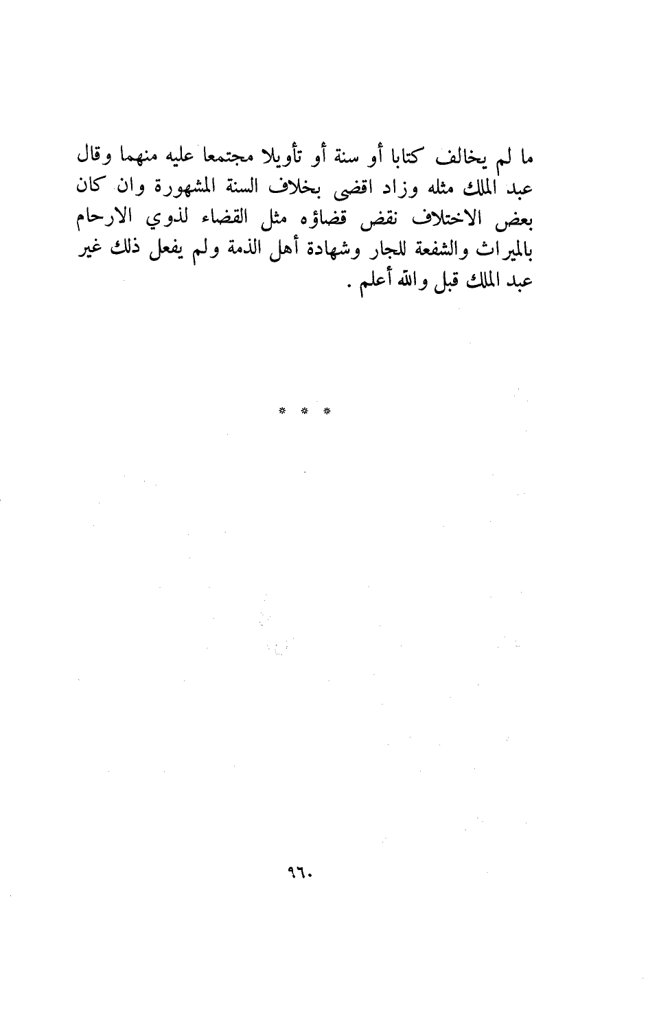 ما لم يخالف كتابا او سنة او تأويلا مجتمعا عليه منهما وقال عبد الملك مثله وزاد أقضي بخلاف السنة المشهوره وان كان بعض الاختلاف نقض قضاؤه مثل القضاء لذوي الارحام بالميراث والشفعه للجار وشهادة أهل الذمة ولم يفعل ذلك غير عبد الملك قبل والله اعلم