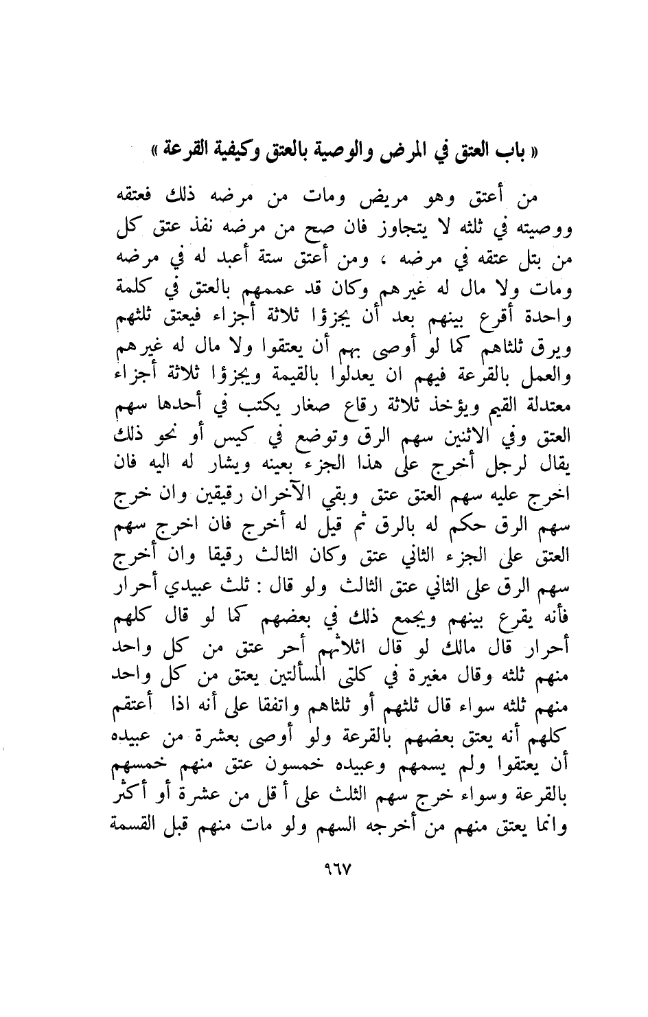 باب العتق في المرض والوصية بالعتق وكيفية القرعة