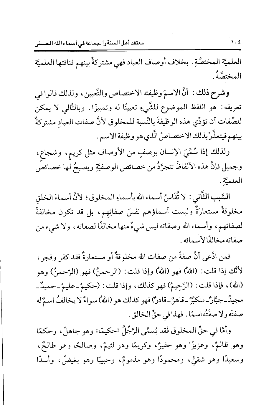 العلميّة المختصة. بخلاف أوصاف العباد فهي مشتركة بينهم فنافتها العلميّة المختصة.