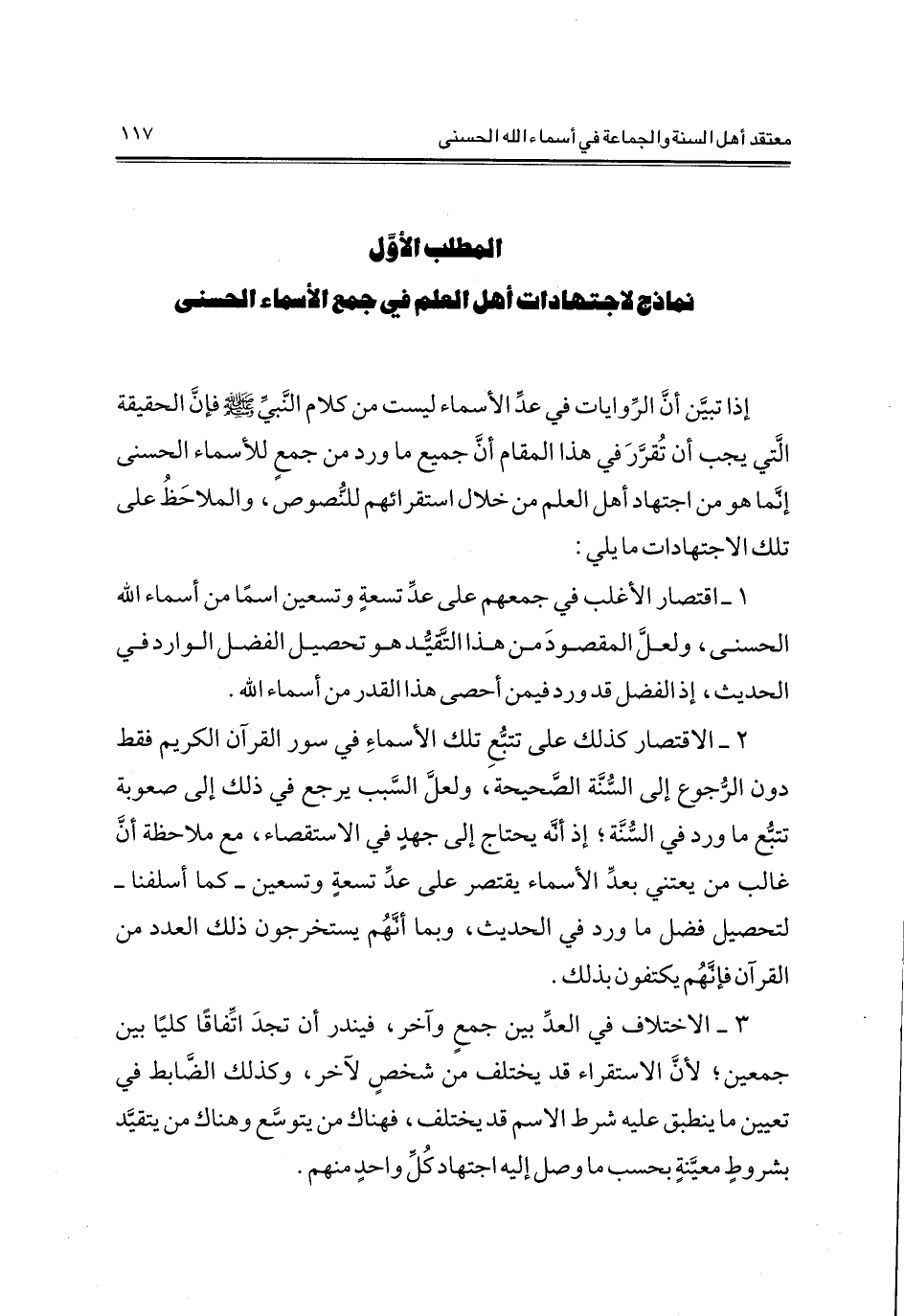 المطلب الأول: نماذج لاجتهادات أهل العلم في جمع الأسماء الحسنى
