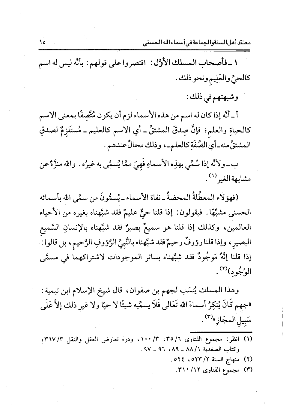 1 انظر: مجموع الفتاوى 6/ 35، 3/100، ودرء تعارض العقل والنقل 3/ 367، وكتاب الصفدية 88/1- 89، 96- 97.