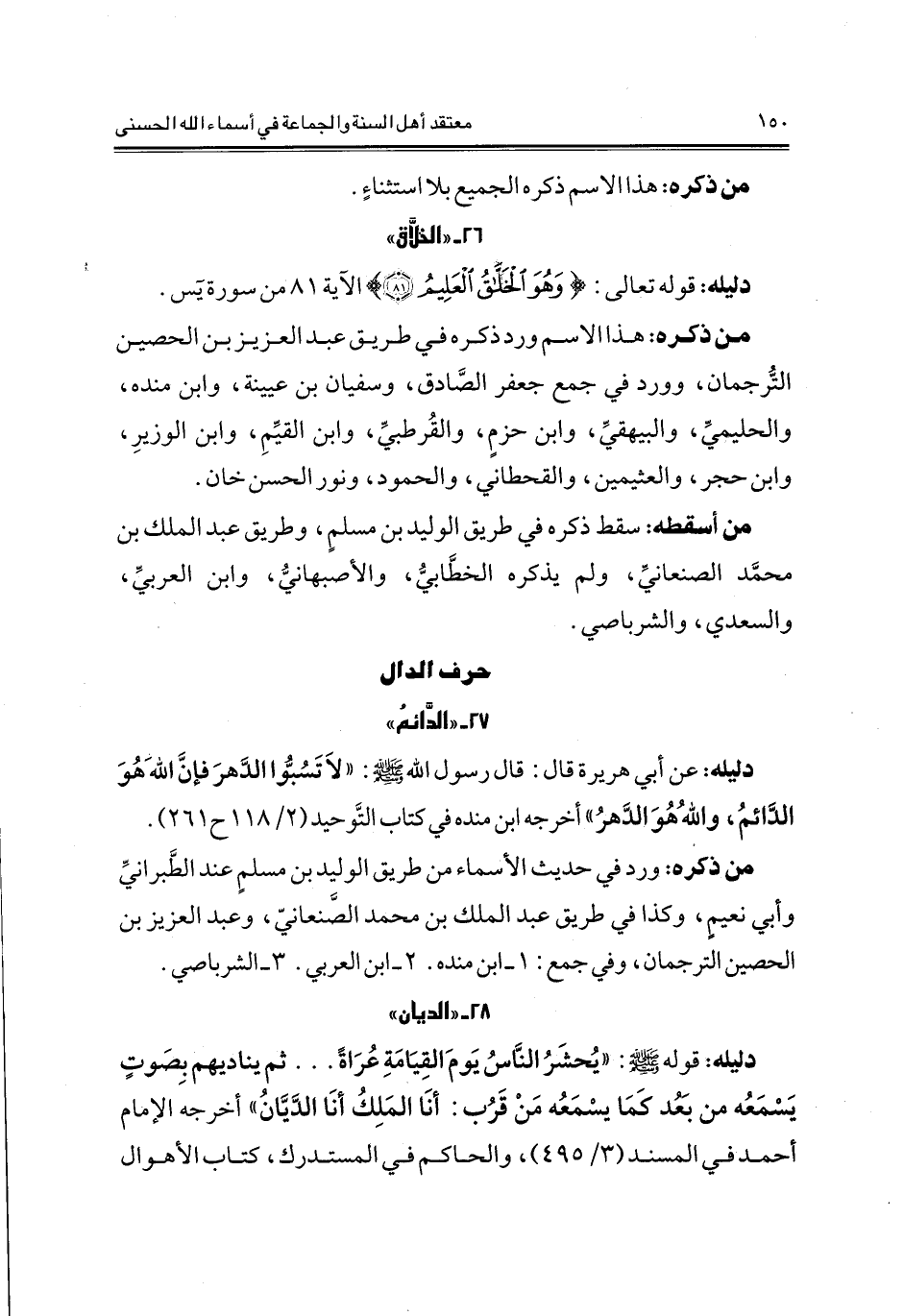 كتاب معتقد أهل السنة والجماعة في أسماء الله الحسنى