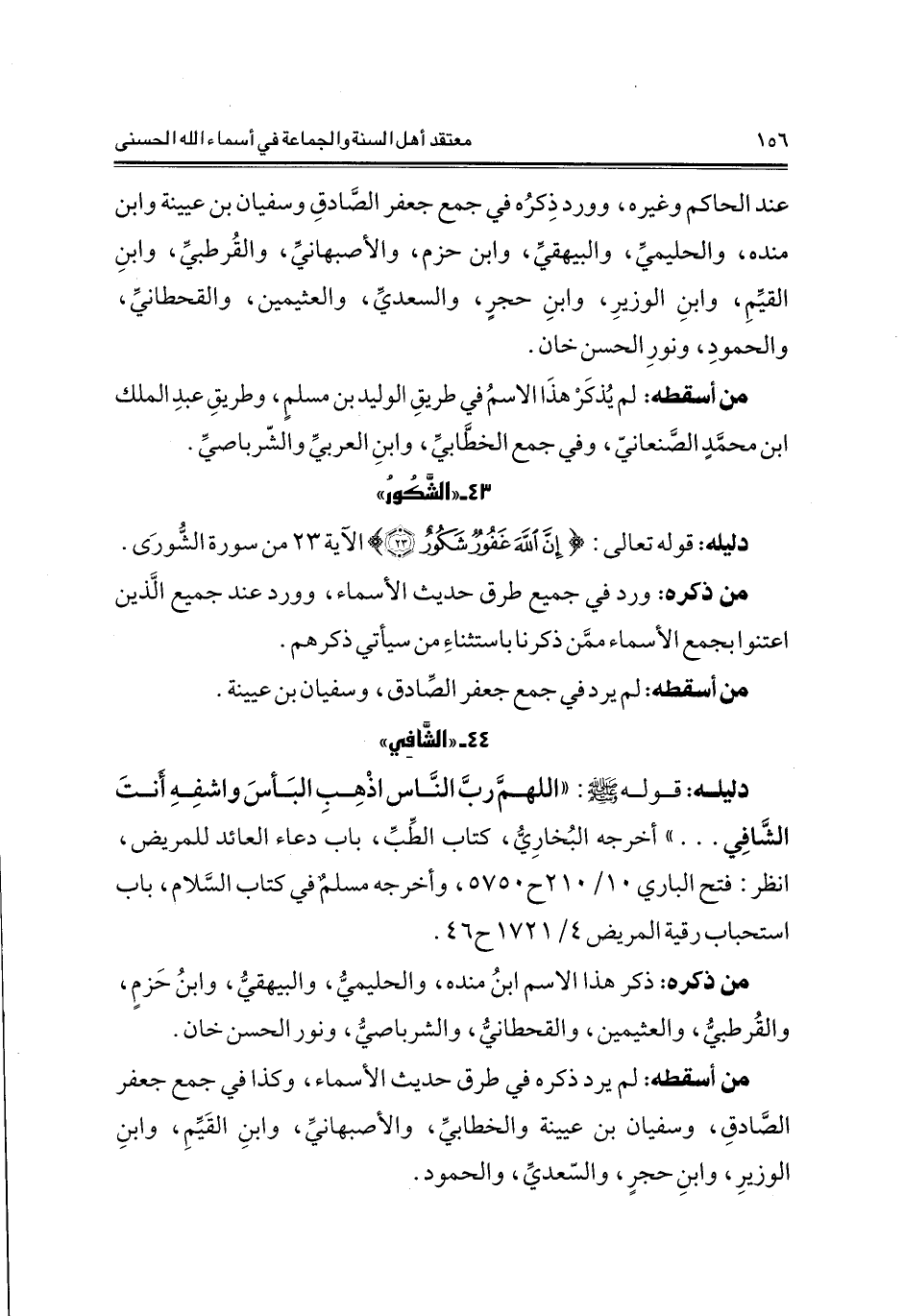 من أسقطه: لم يرد ذكره في طرق حديث الأسماء، وكذا في جمع جعفر الصَّادق، وسفيان بن عيينة والخطابيِّ، والأصبهانيِّ، وابنِ القيِّم، وابنِ الوزير، وا بن حجرٍ، والسِّعديِّ، والحمود.