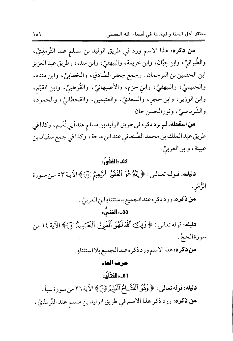 كتاب معتقد أهل السنة والجماعة في أسماء الله الحسنى