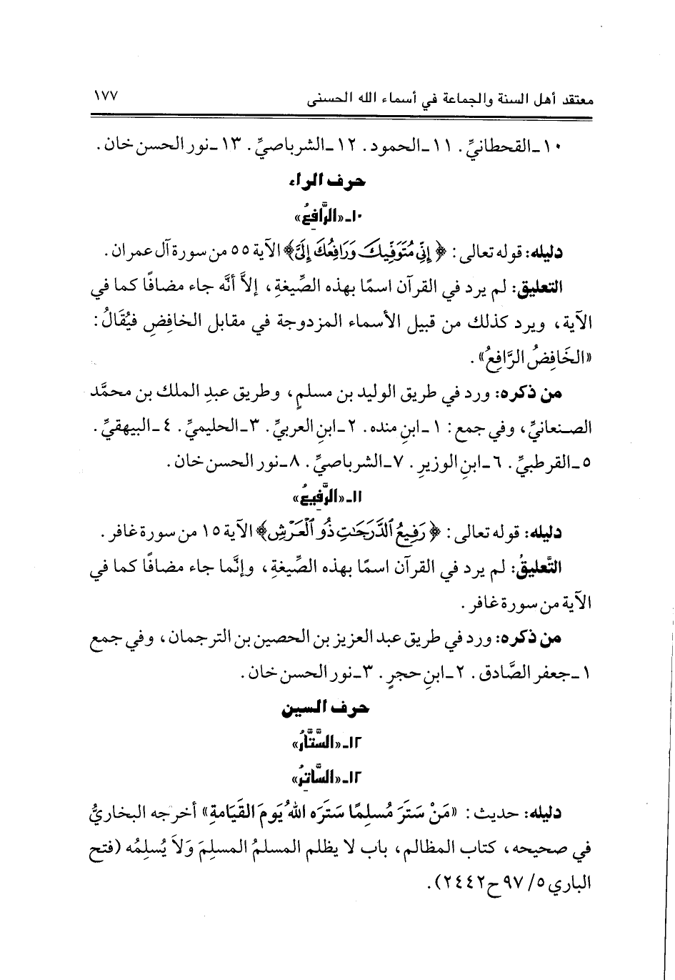 10- القحطانيِّ. 11- الحمود. 12- الشرباصيِّ. 13- نور الحسن خان.