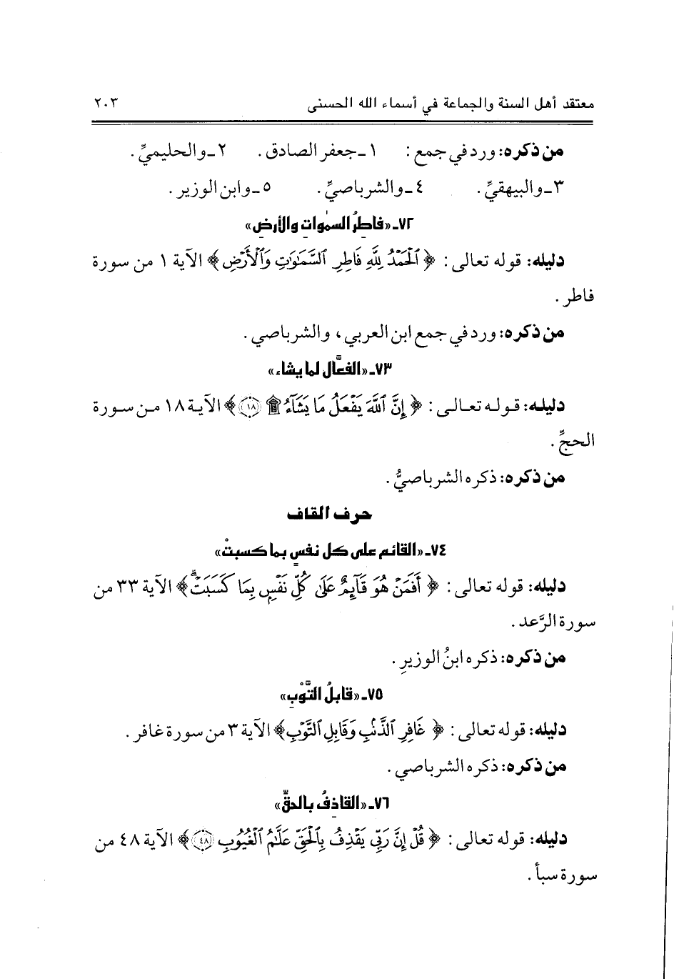 كتاب معتقد أهل السنة والجماعة في أسماء الله الحسنى