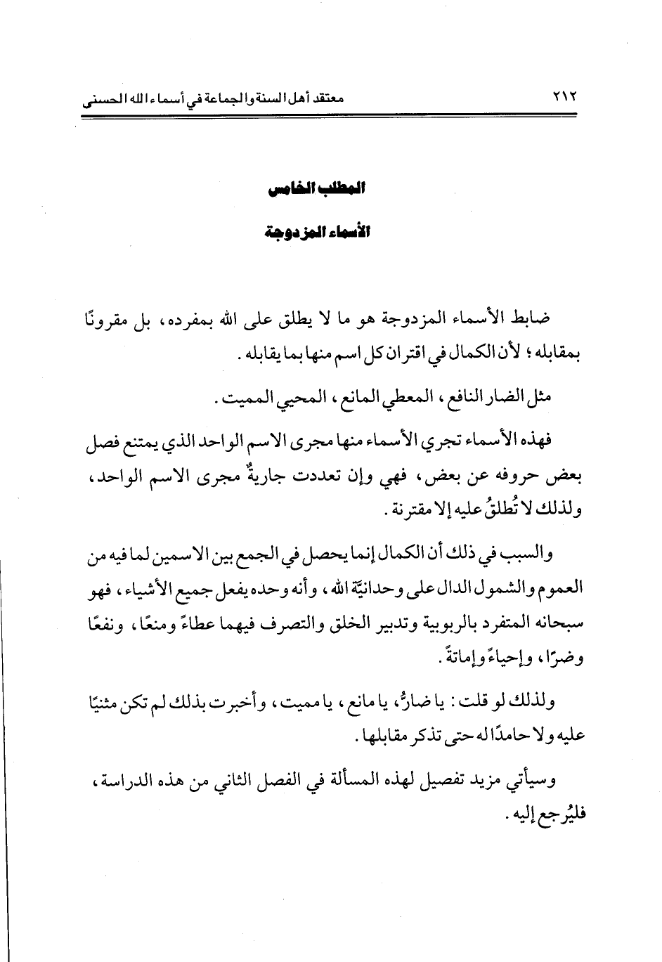 ضابط الأسماء المزدوجة هو ما لا يطلق على الله بمفرده، بل مقروتا بمقابله؛ لأن الكمال في اقتران كل اسم منها بما يقابله.