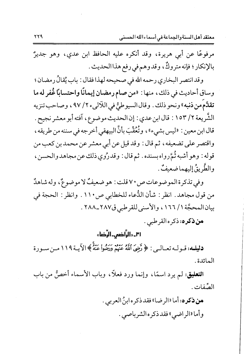كتاب معتقد أهل السنة والجماعة في أسماء الله الحسنى