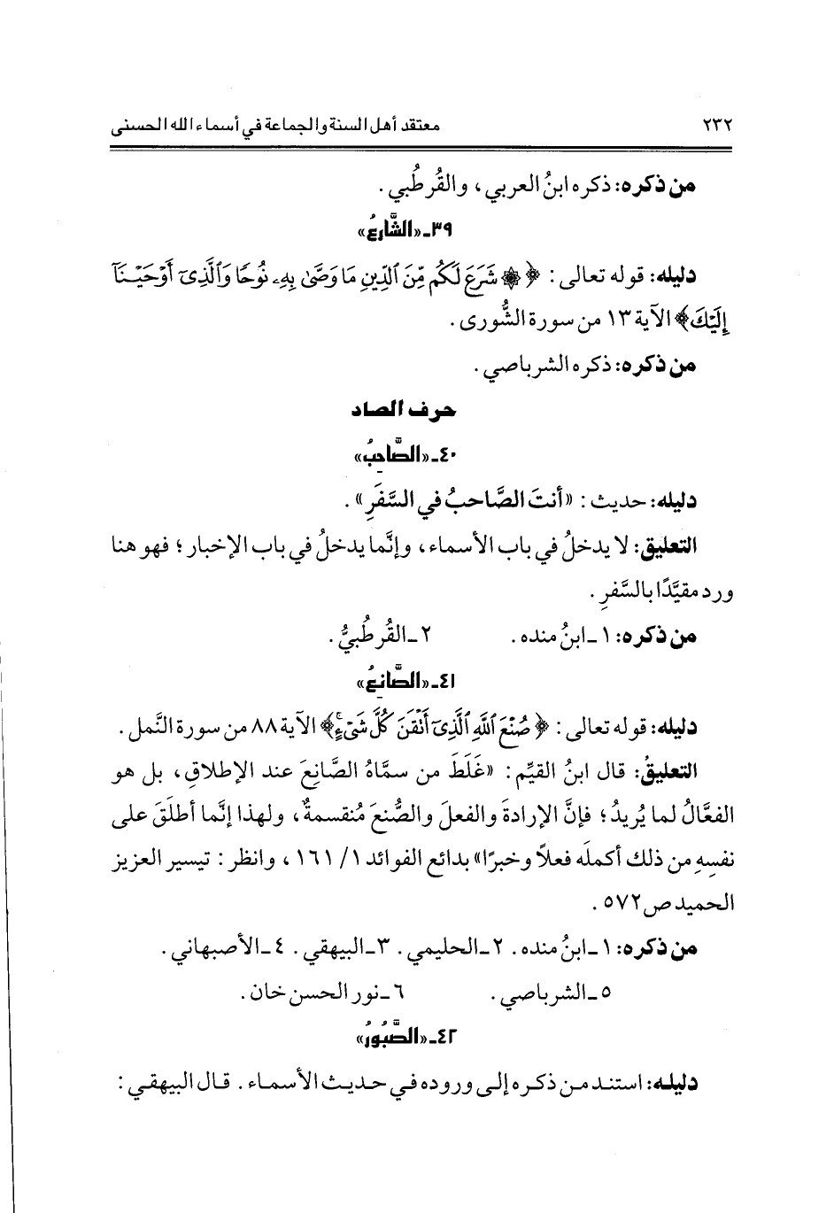 التعليق: قال ابن القيم: "غلَط من سمَّاه الصَّانعَ عند الإطلاق، بل هو الفعّال لما يريدُ؛ فإن الإرادة والفعلَ والصُّنعَ منقسمة، ولهذا إنَّما أطلَقَ على نفسه من ذلك أكملَه فعلا وخبرا " بدائع الفوائد 1/ 161، وانظر: تيسير العزيز الحميد ص 572.