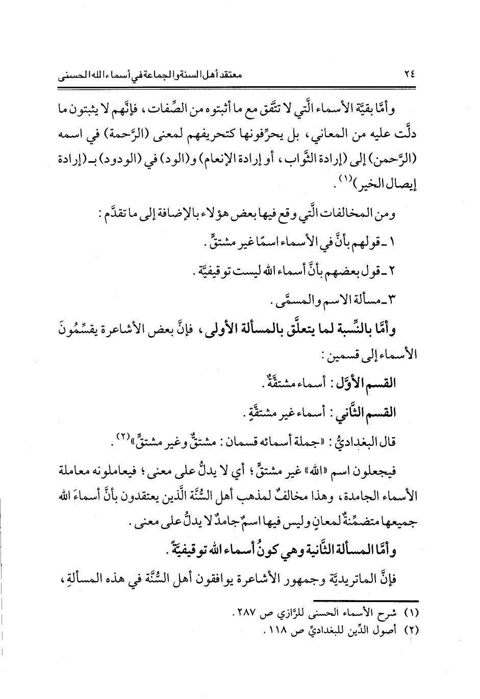 كتاب معتقد أهل السنة والجماعة في أسماء الله الحسنى