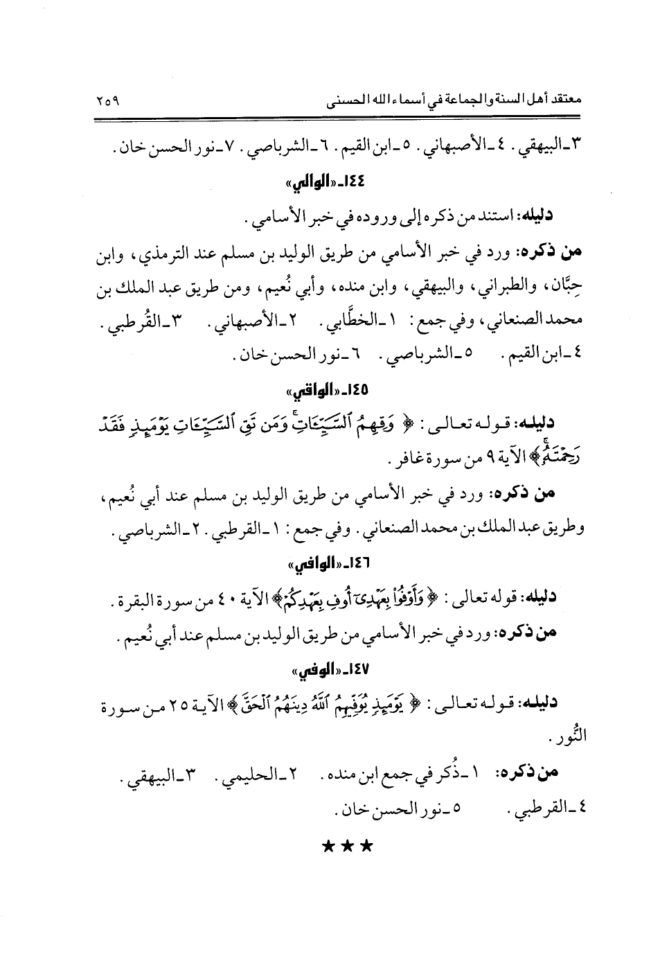 3- البيهقي. 4- الأصبهاني. 5- ابن القيم. 6- الشرباصي. 7- نور الحسن خان.
