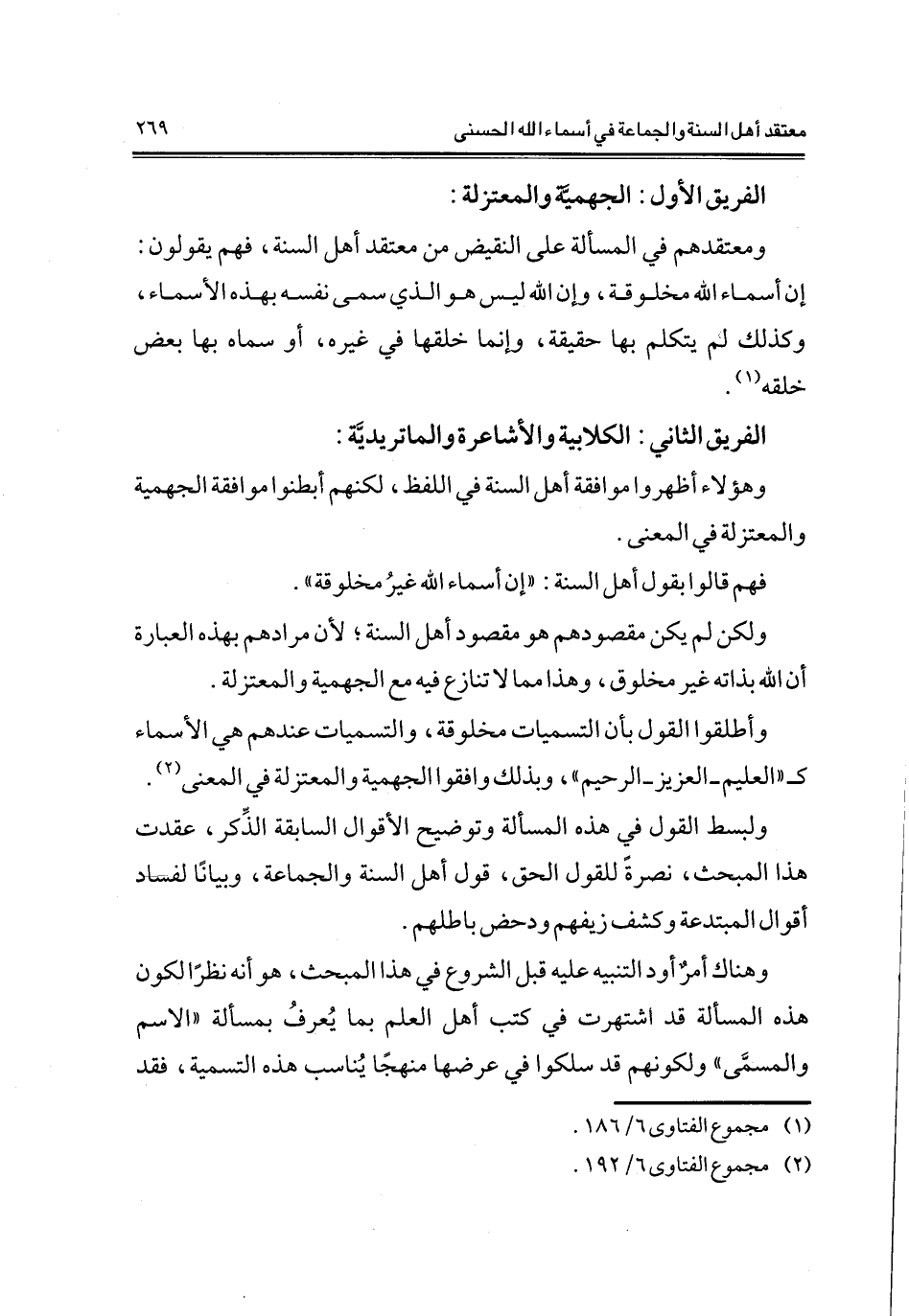 إن أسماء الله مخلوقة، وإن الله ليس هو الذي سمى نفسه بهذه الأسماء، وكذلك لم يتكلم بها حقيقة، وإنما خلقها في غيره، أو سماه بها بعض خلقه1