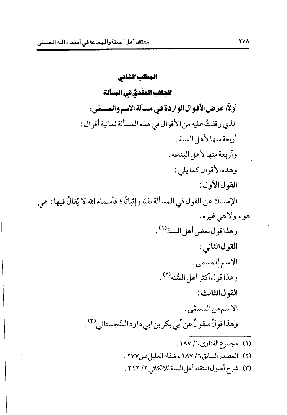 أولا: عرض الأقوال الواردة في مسألة الاسم والمسمى: