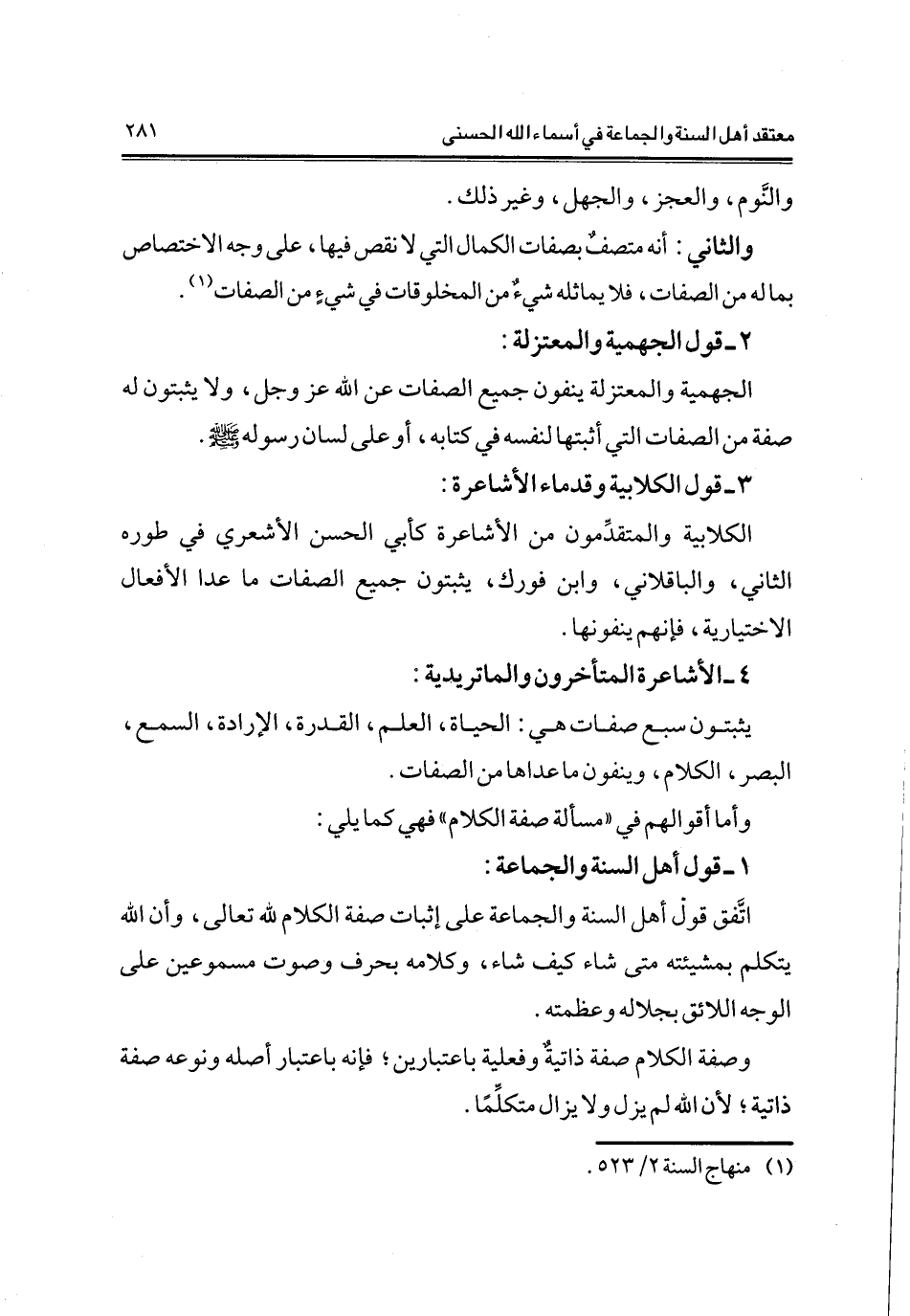 وأما أقوالهم في "مسألة صفة الكلام" فهي كما يلي:
