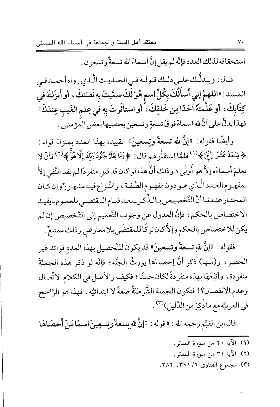 كتاب معتقد أهل السنة والجماعة في أسماء الله الحسنى