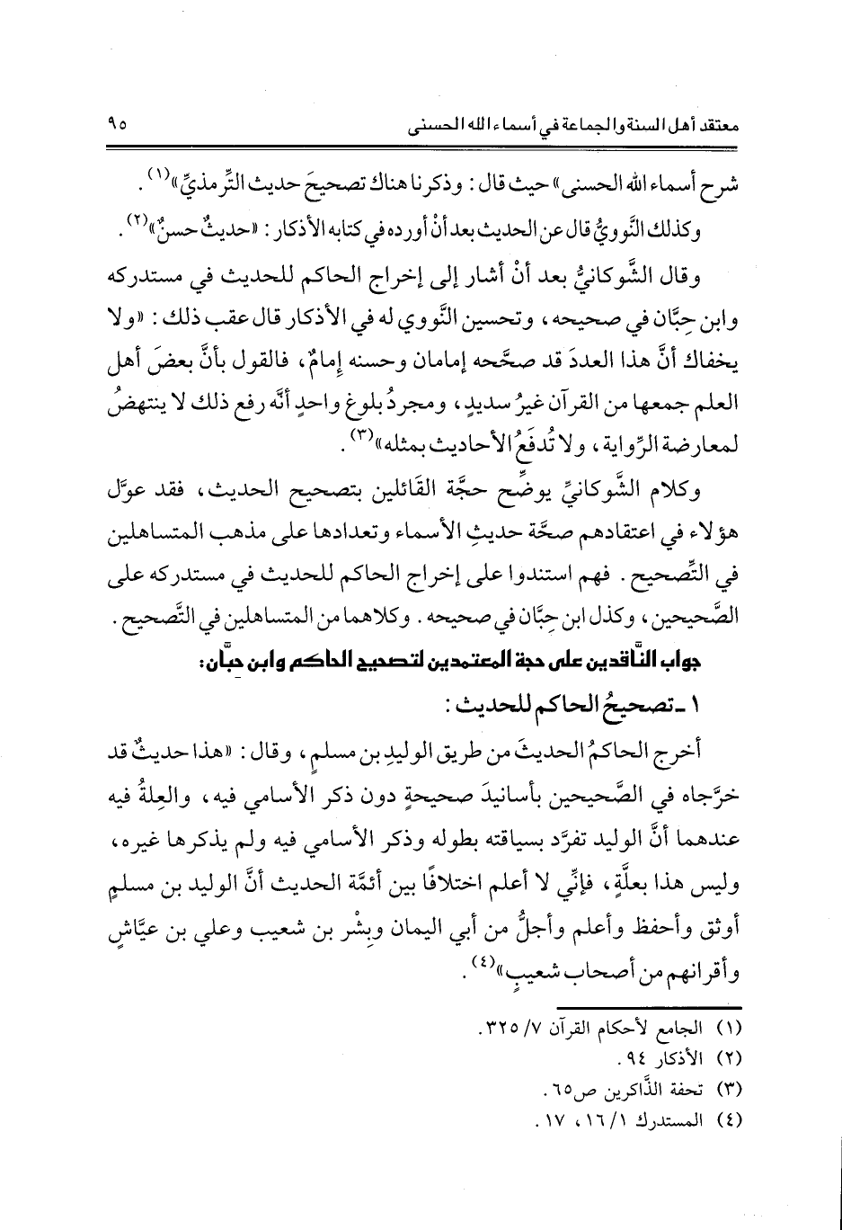 شرح أسماء الله الحسنى" حيث قال: وذكرنا هناك. تصحيح حديث الترمذي"1. وكذلك النووي قال عن الحديث بعد أن أورده في كتابه الأذكار: "حديث حسن"2.