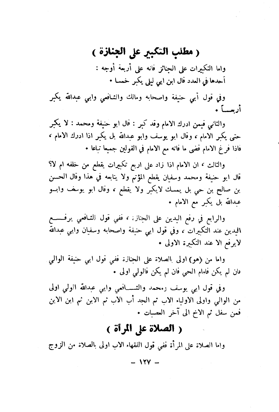 وَالرَّابِع فِي رفع الْيَدَيْنِ على الْجِنَازَة فَفِي قَول الشَّافِعِي يرفع الْيَدَيْنِ عِنْد التَّكْبِيرَات وَفِي قَول ابي حنيفَة واصحابه وسُفْيَان وابي عبد الله لَا يرفع الا عِنْد التَّكْبِيرَة الاولى