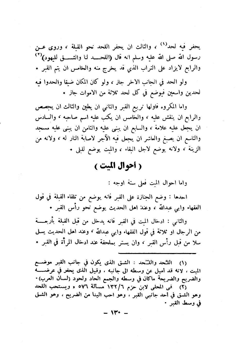 واما احوال الْمَيِّت فعلى سِتَّة اوجه
