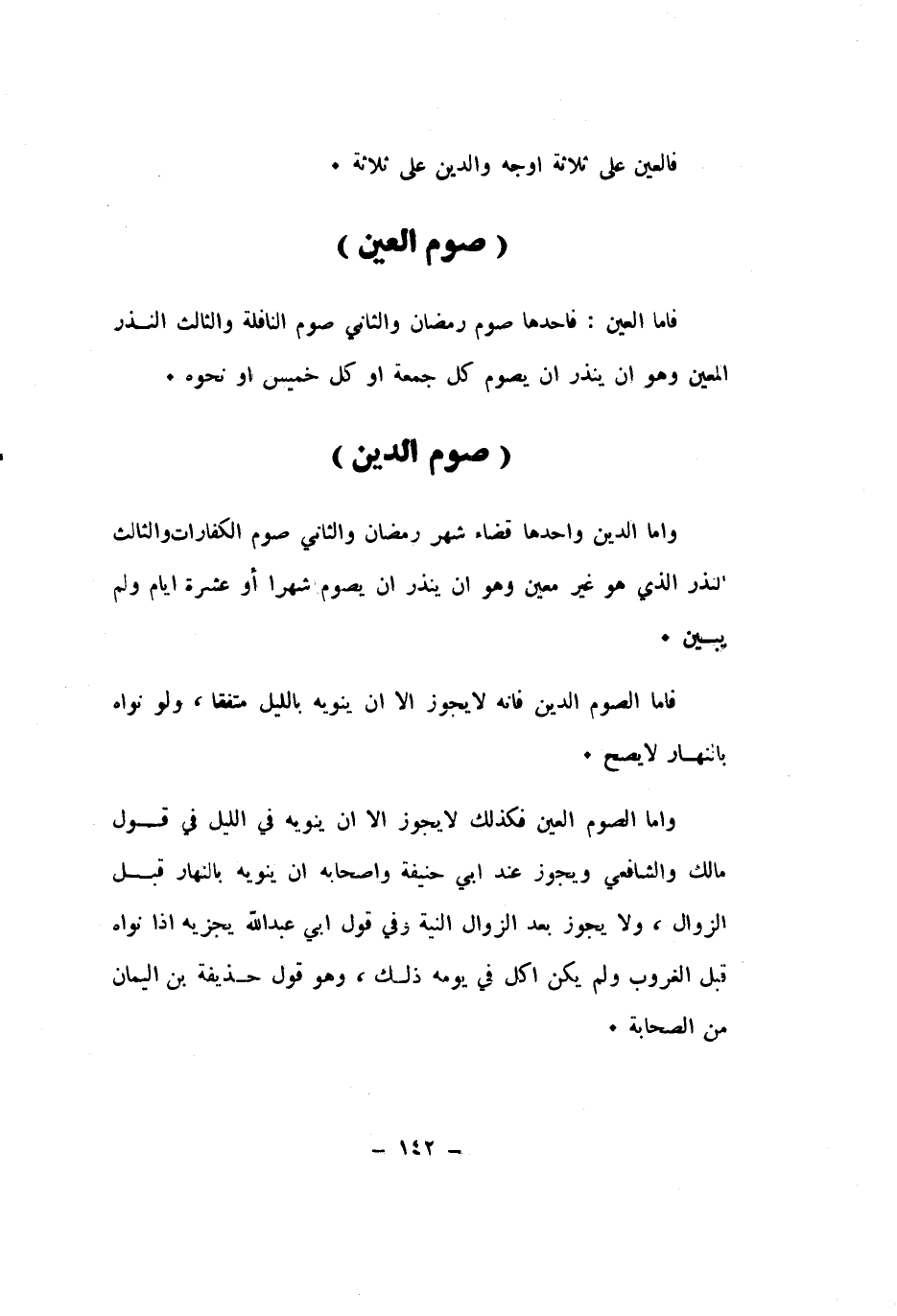فاما الْعين فاحدها صَوْم رَمَضَان وَالثَّانِي صَوْم النَّافِلَة وَالثَّالِث النّذر الْمعِين وَهُوَ ان ينذر ان يَصُوم كل جُمُعَة اَوْ كل خَمِيس اَوْ نَحوه