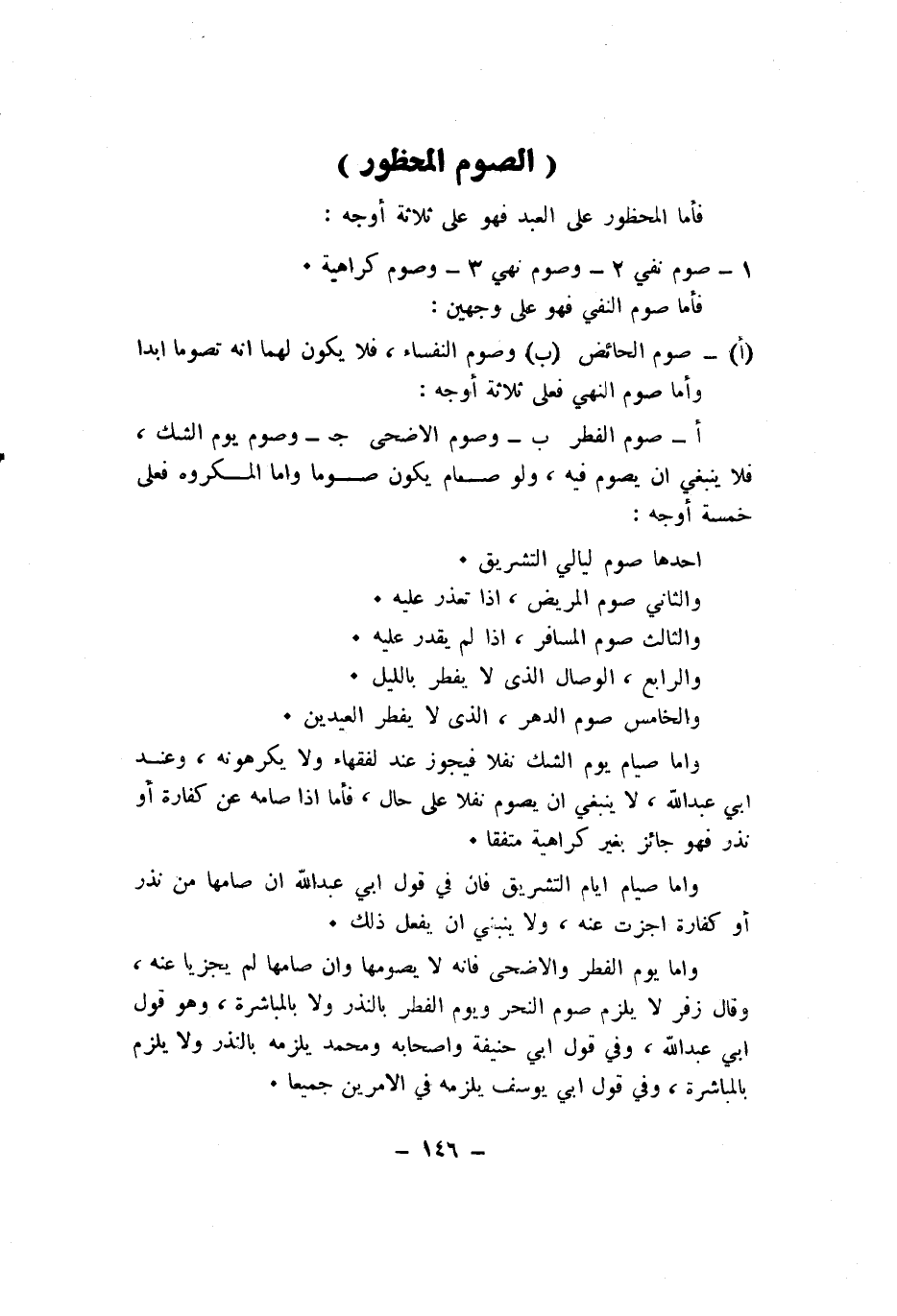 أَصوم الْفطر ب وَصَوْم الاضحى ج وَصَوْم يَوْم الشَّك فَلَا يَنْبَغِي ان يَصُوم فِيهِ وَلَو صَامَ يكون صوما واما الْمَكْرُوه فعلى خَمْسَة أوجه