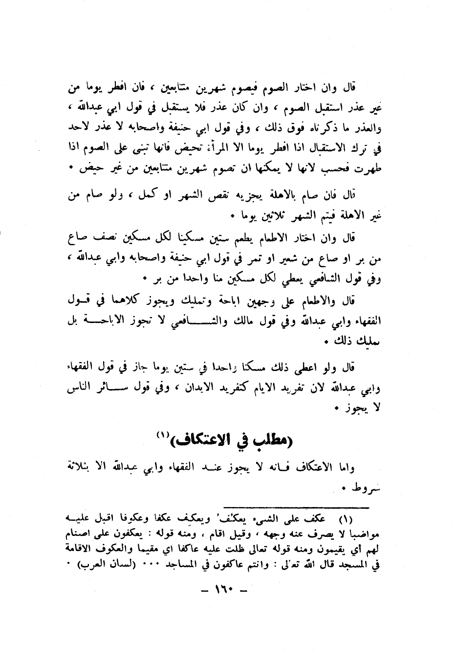 واما الِاعْتِكَاف فانه لَا يجوز عِنْد الْفُقَهَاء وابي عبد الله الا بِثَلَاثَة شُرُوط