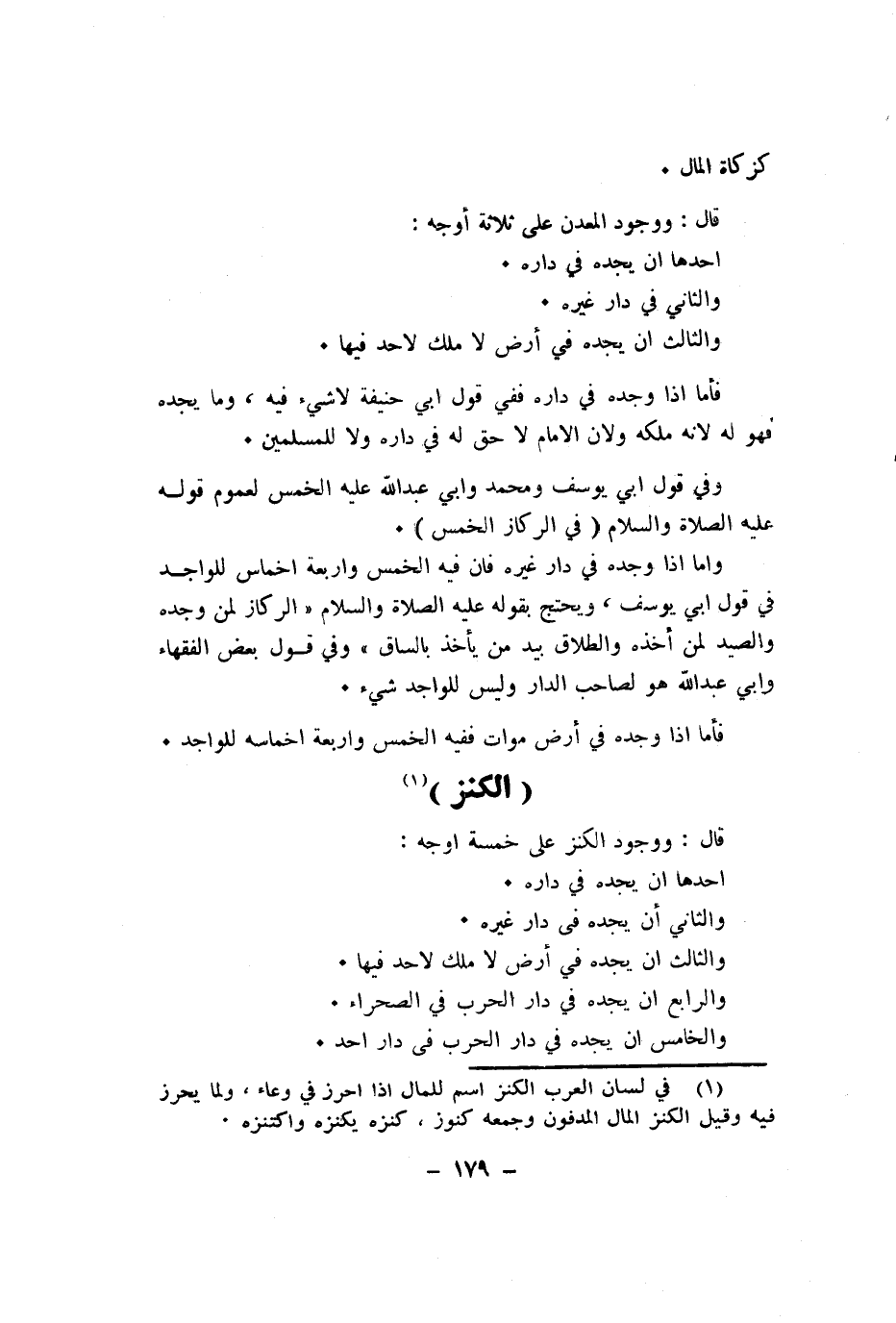 قَالَ وَوُجُود الْكَنْز على خَمْسَة اوجه