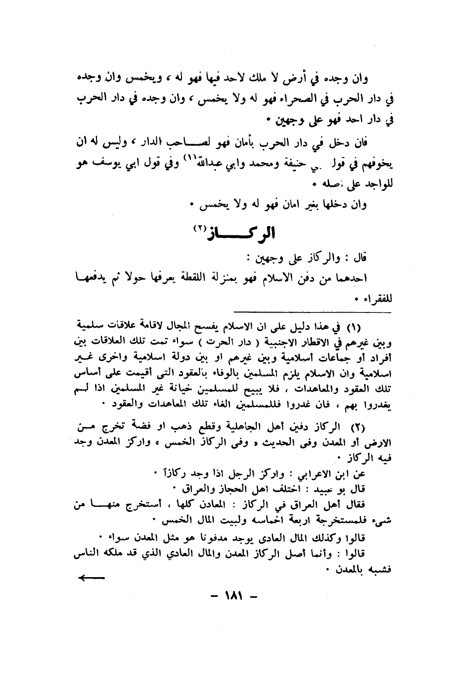 احدهما من دفن الاسلام فَهُوَ بِمَنْزِلَة اللّقطَة يعرفهَا حولا ثمَّ يَدْفَعهَا للْفُقَرَاء