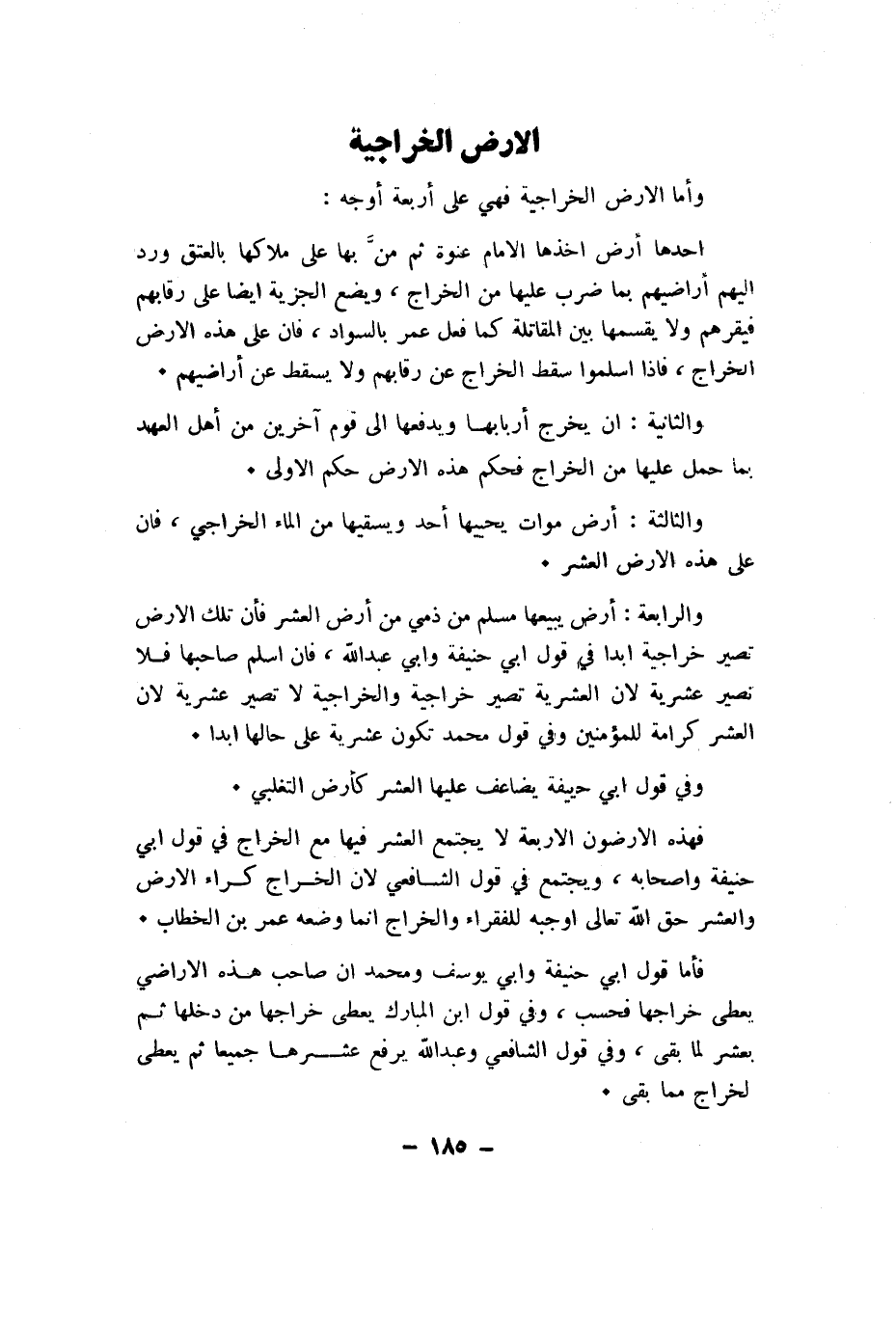 وَأما الارض الخراجية فَهِيَ عَليّ أَرْبَعَة أوجه