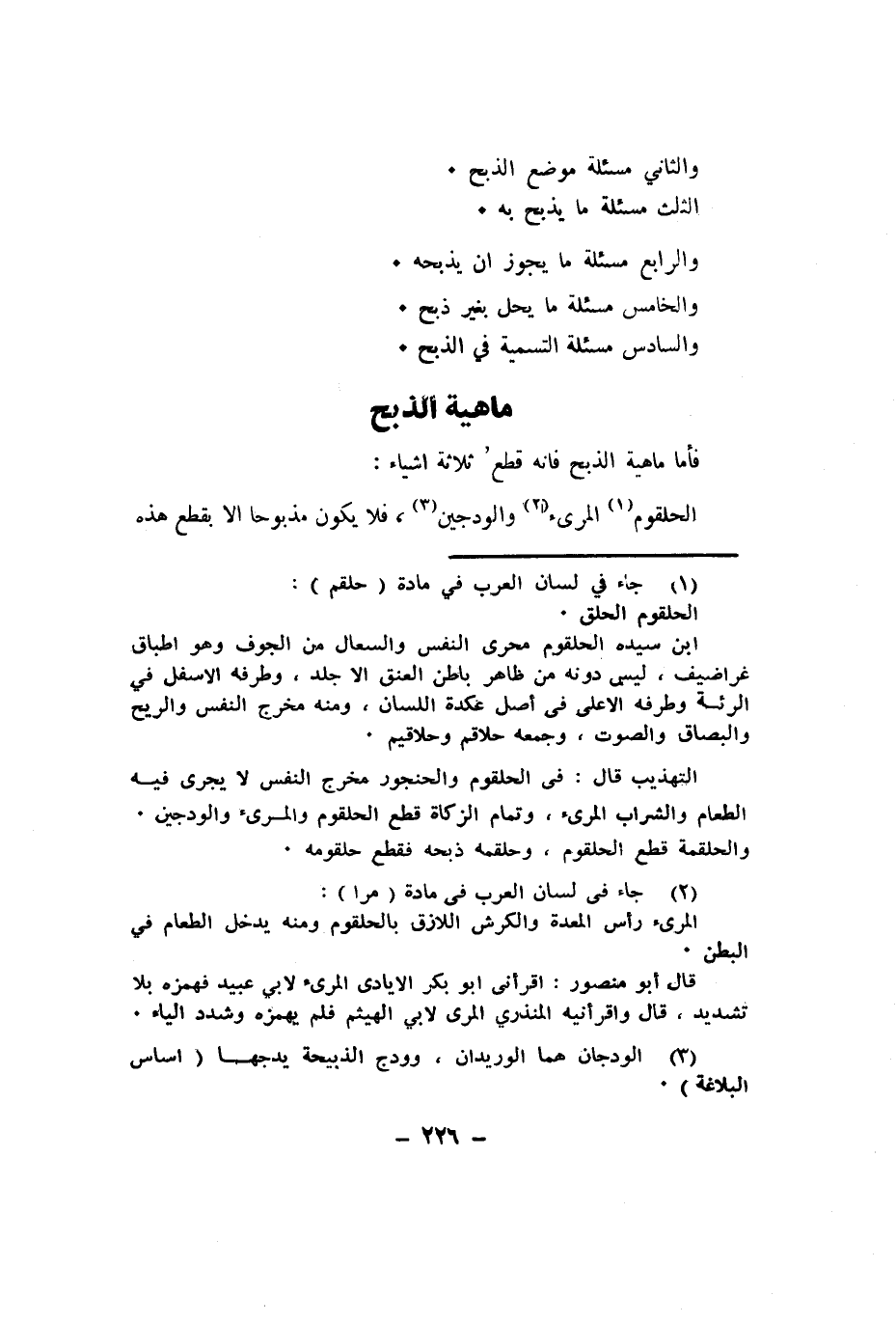 فَأَما مَاهِيَّة الذّبْح فانه قطع ثَلَاثَة اشياء